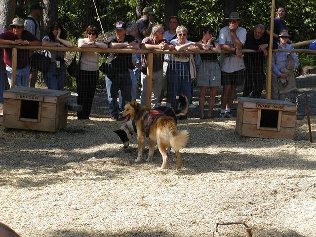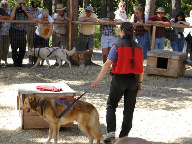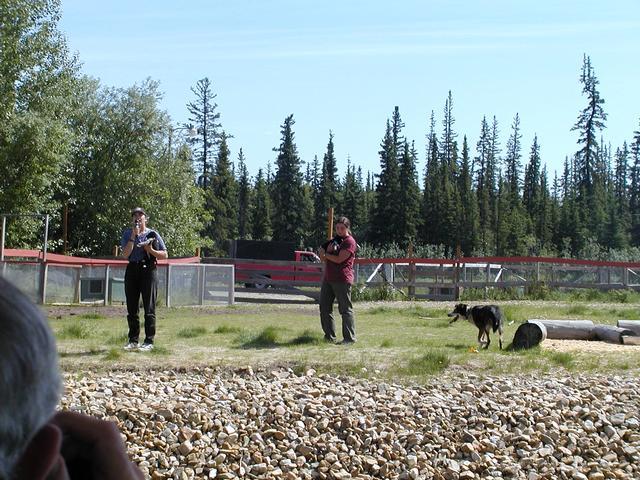 A sled dog demonstration at Susan Butcher's kennel, along the banks of the Chena.
