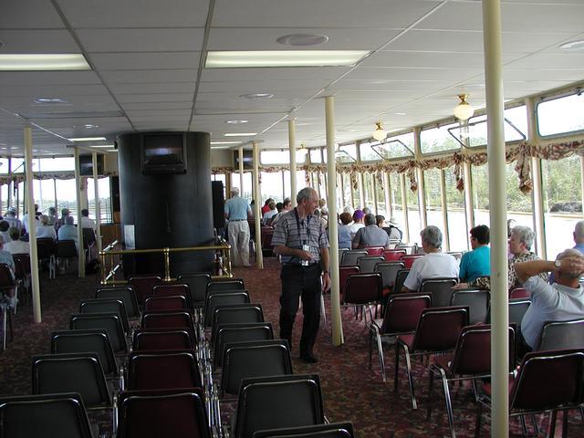 A view inside the boat. Everyone here is at least 60 years old.