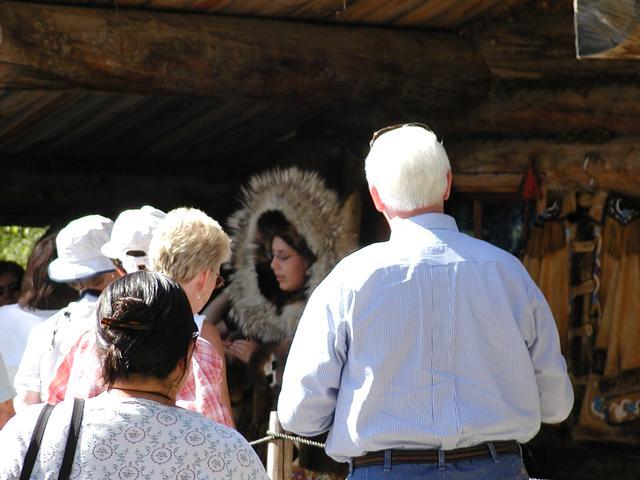 Here's one of our guides trying on a fancy Athabascan parka.