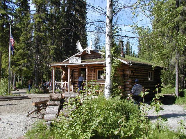 They brought us ashore at a fake town called Chena Village to see some displays and to hear about Athabascan culture. Here's the riverboat docked at Chena Village.