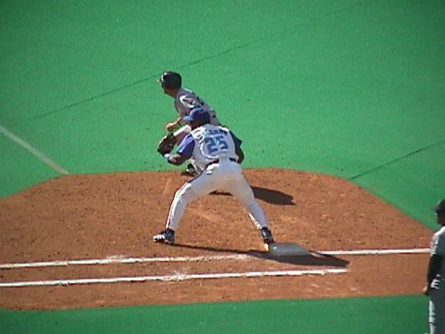 Tino takes the throw on a Delgado groundout.