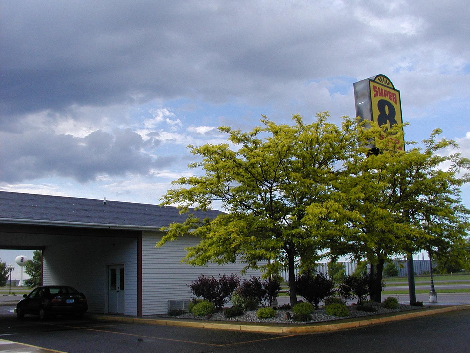The Super 8 in Becker, Minnesota. We cheated and took the picture in the morning, since we arrived in a heavy downpour.