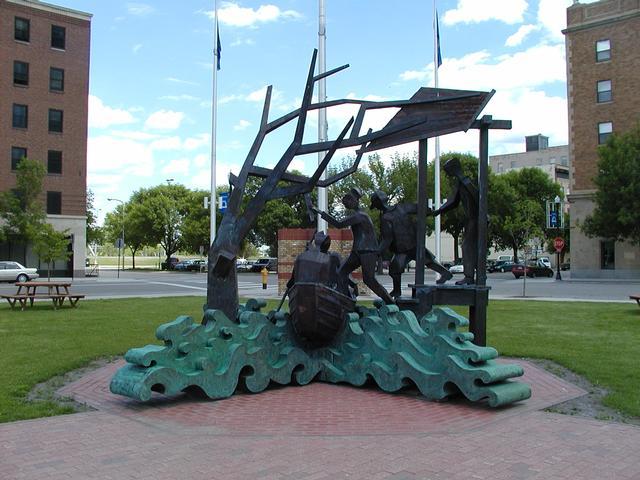 East Grand Forks, Minnesota. There are a bunch of statues of people doing fun things here.