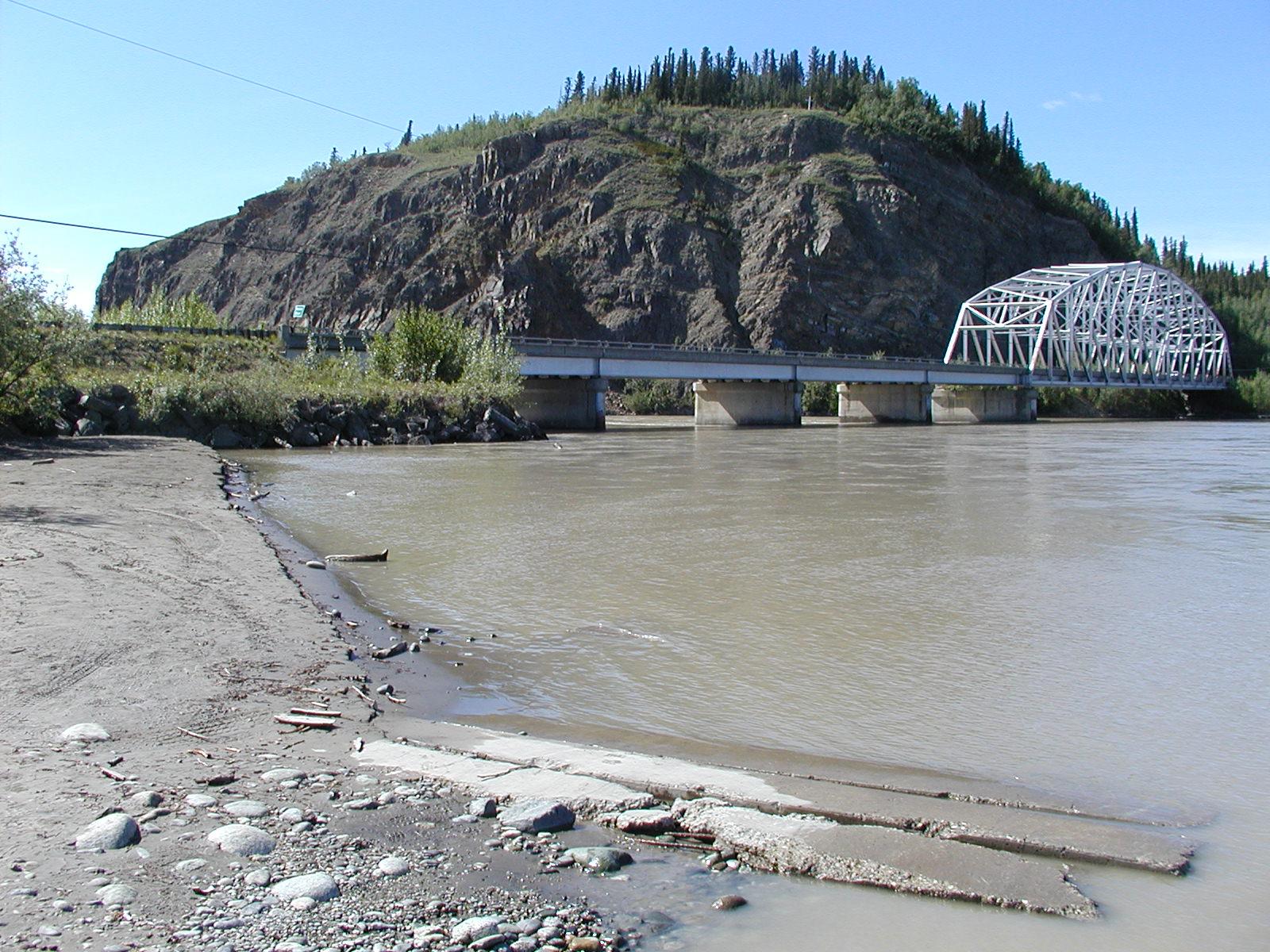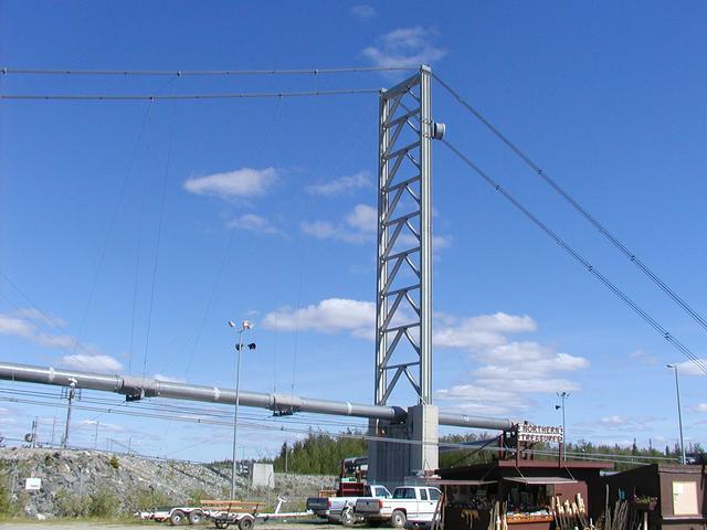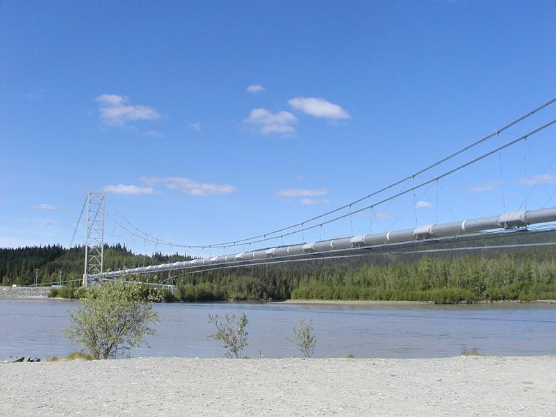 The Alaska Pipeline crosses the Tanana River at Big Delta.