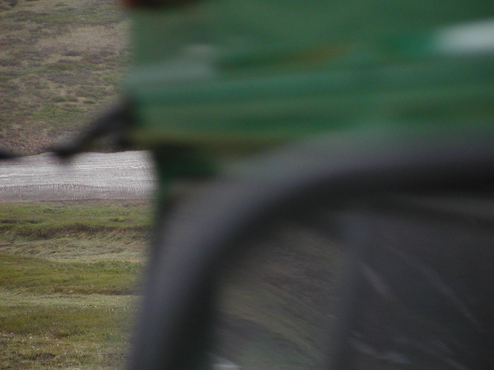 This is a bus passing between us and the caribou.