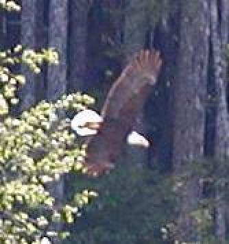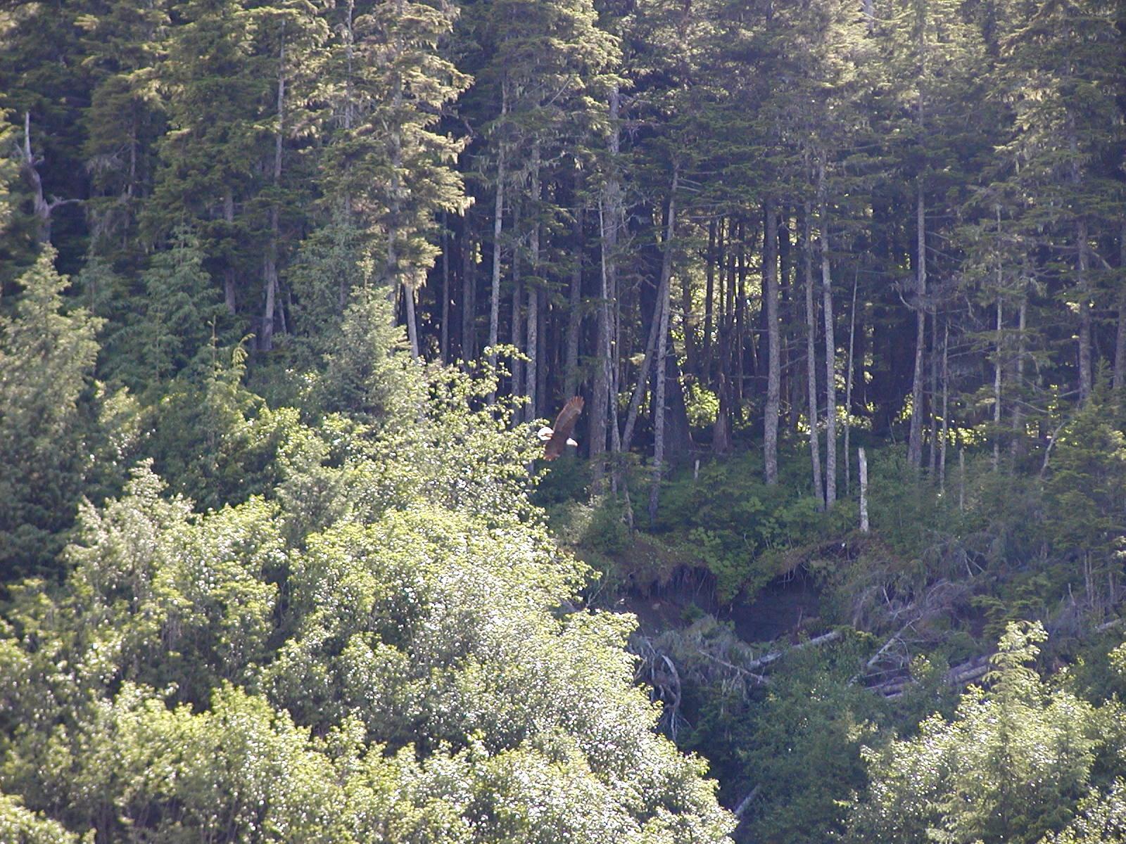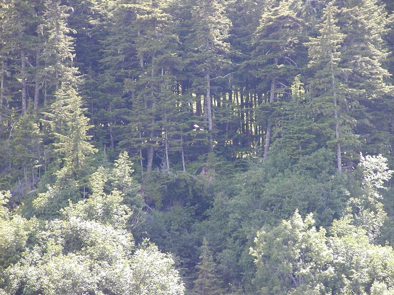 The bald eagle again. This time, just above center in the picture. The Inside Passage, and Haines in particular, is a popular location for bald eagles.