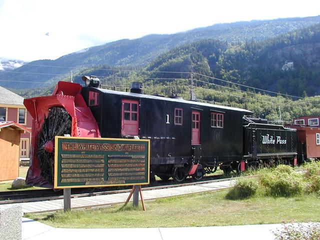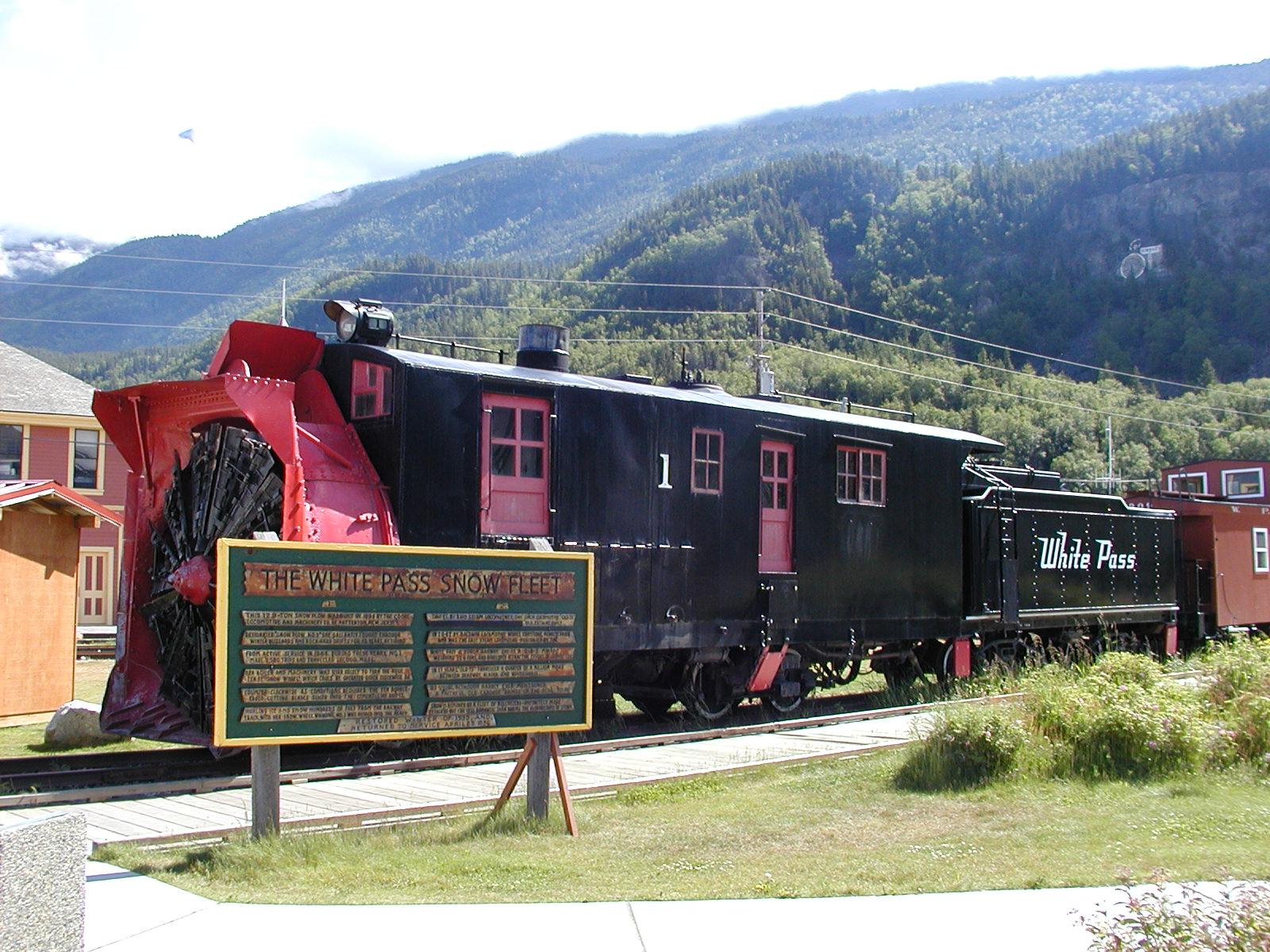 The snow remover car from the White Pass and Yukon Route railroad, on display in Skagway.