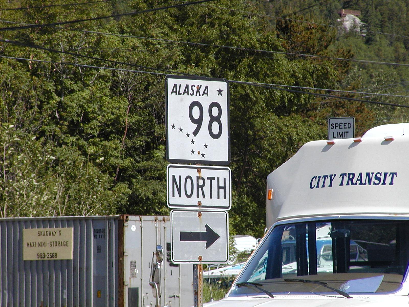 This is where the Klondike Highway starts. Rob figured out why it's Route 98 when all of Alaska's other highways have small numbers - it's the route of 1898.