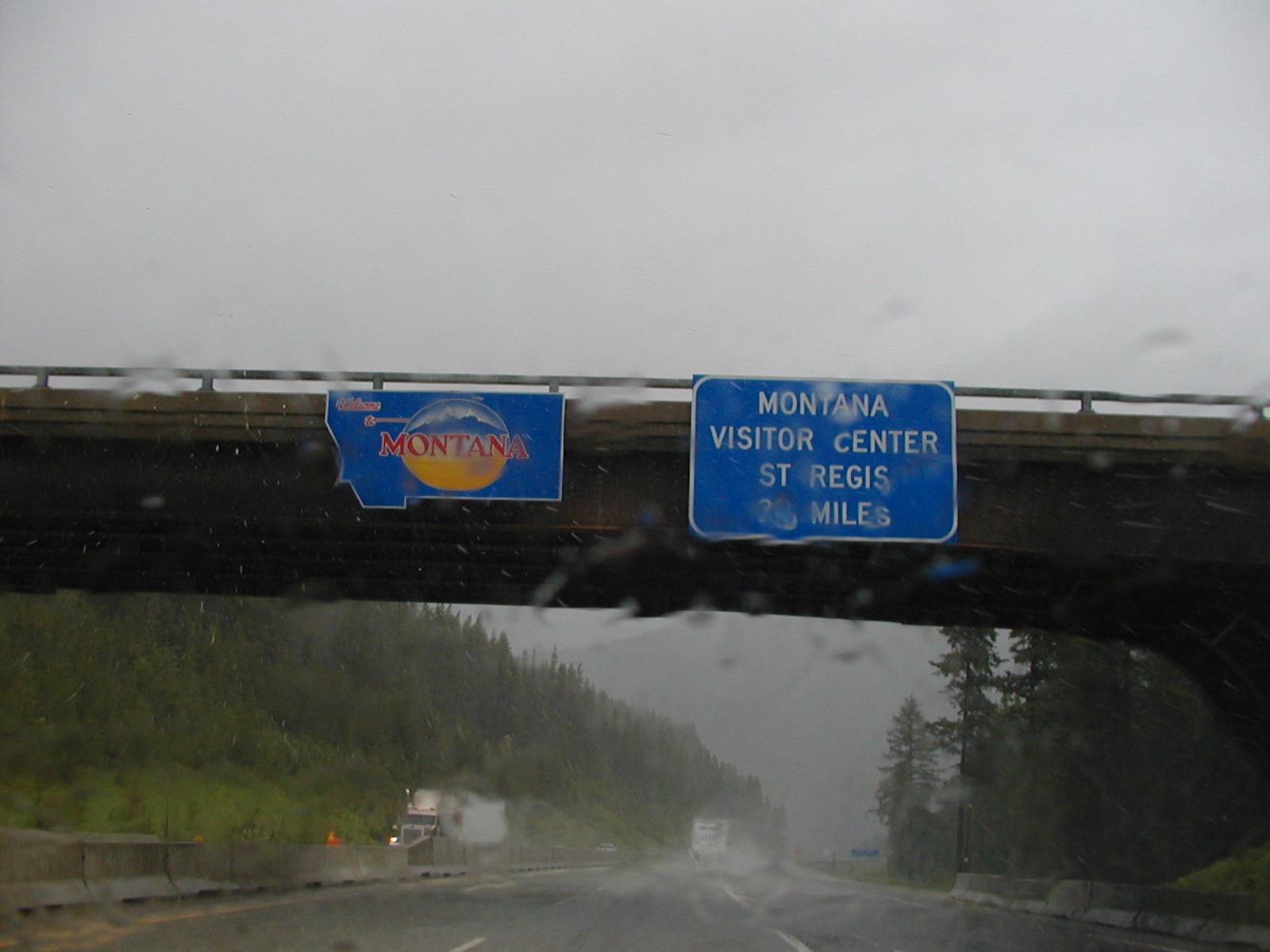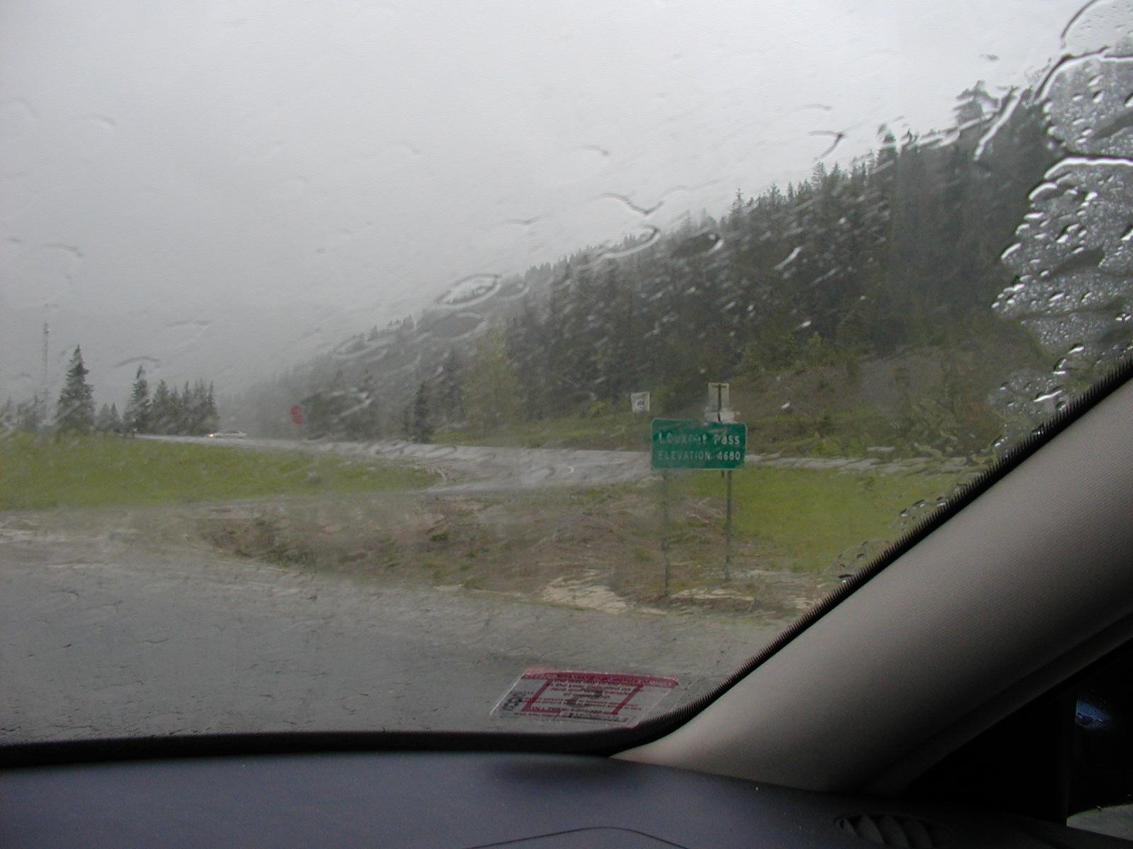 There's the sign for Lookout Pass. It sure is raining.