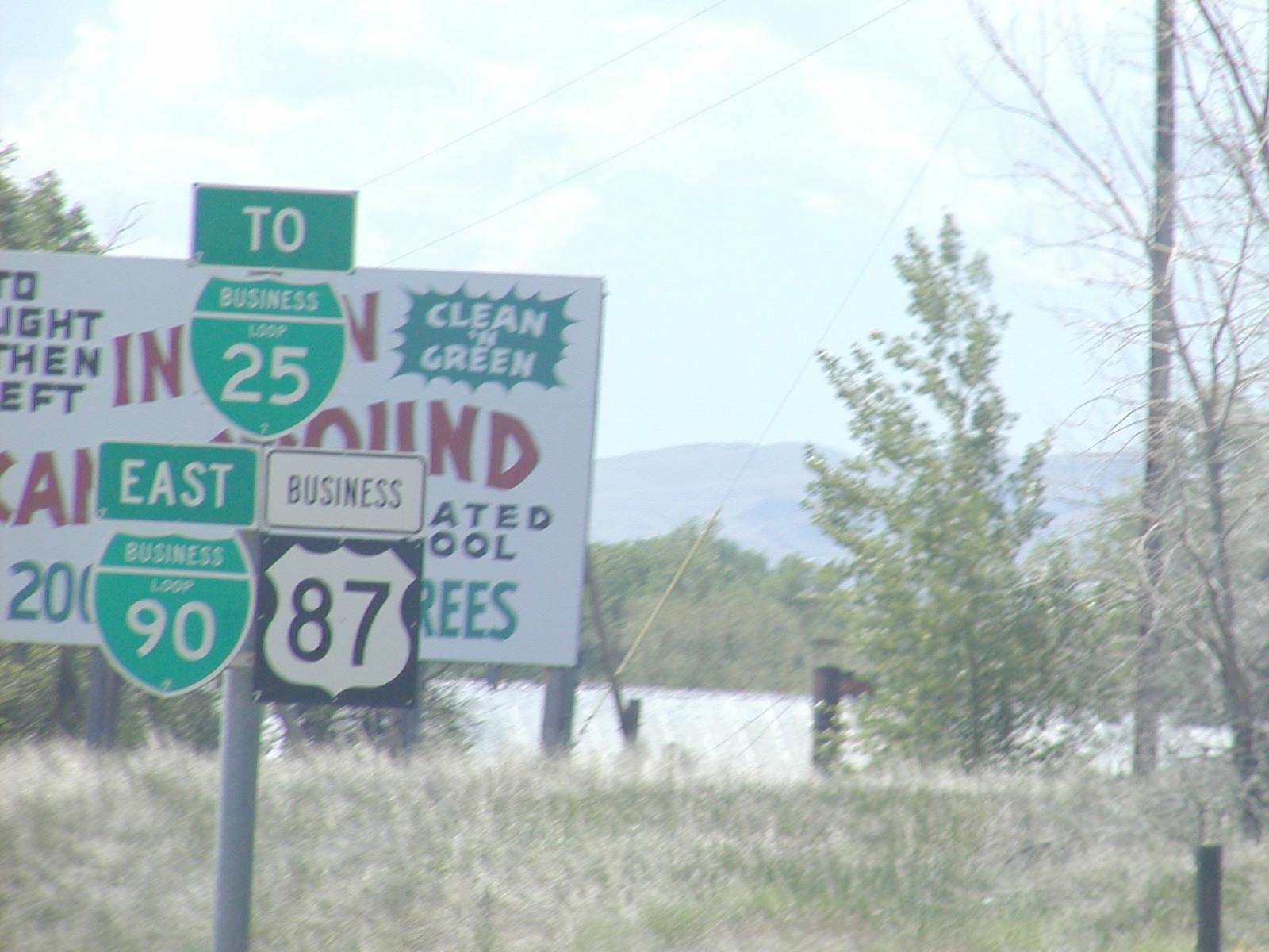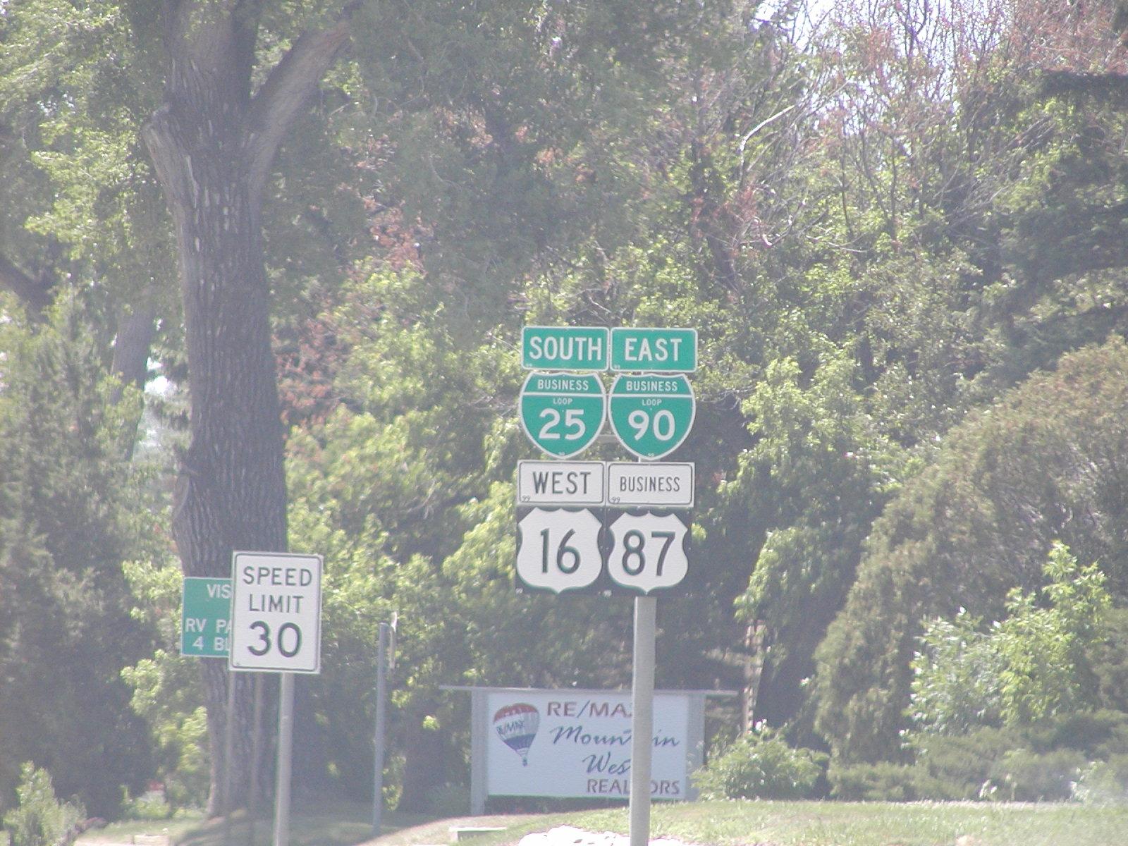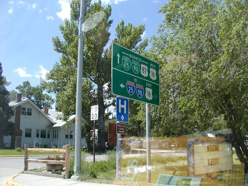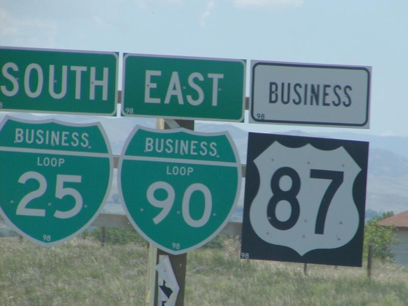 An unintentional closeup of some signs in Buffalo, Wyoming. It was almost deleted, but then I noticed the small "98" on the bottom of each shield. So what? I don't know. I warned you not to look at the highway sign pictures.