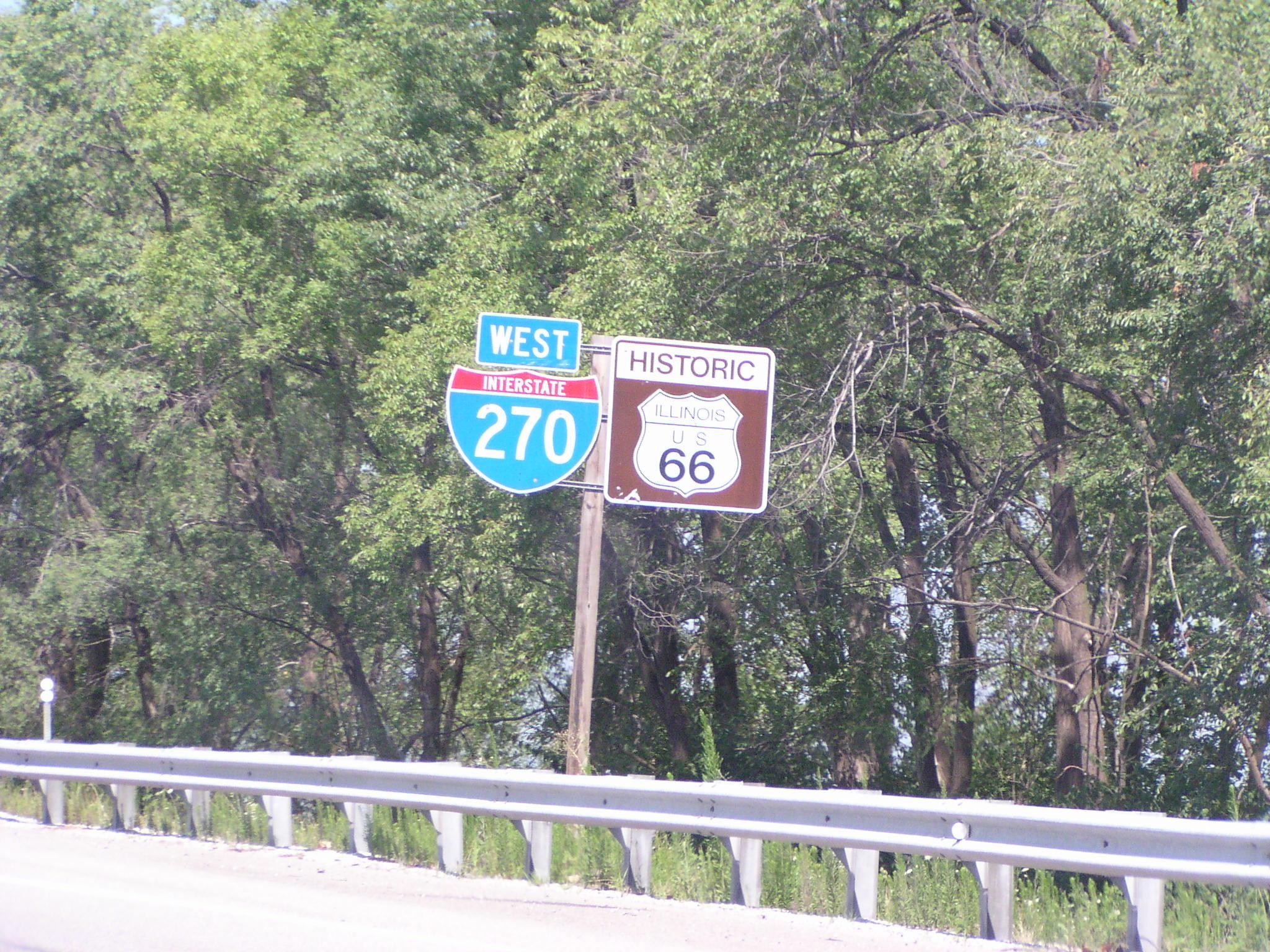 Historic US 66 is here on the interstate since its old route across the Chain of Rocks bridge is no longer open to traffic.
