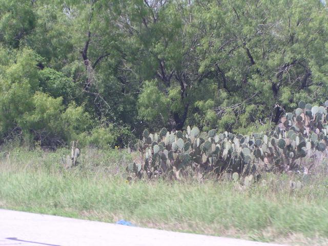 Some prickly pear cacti along the side of the road.