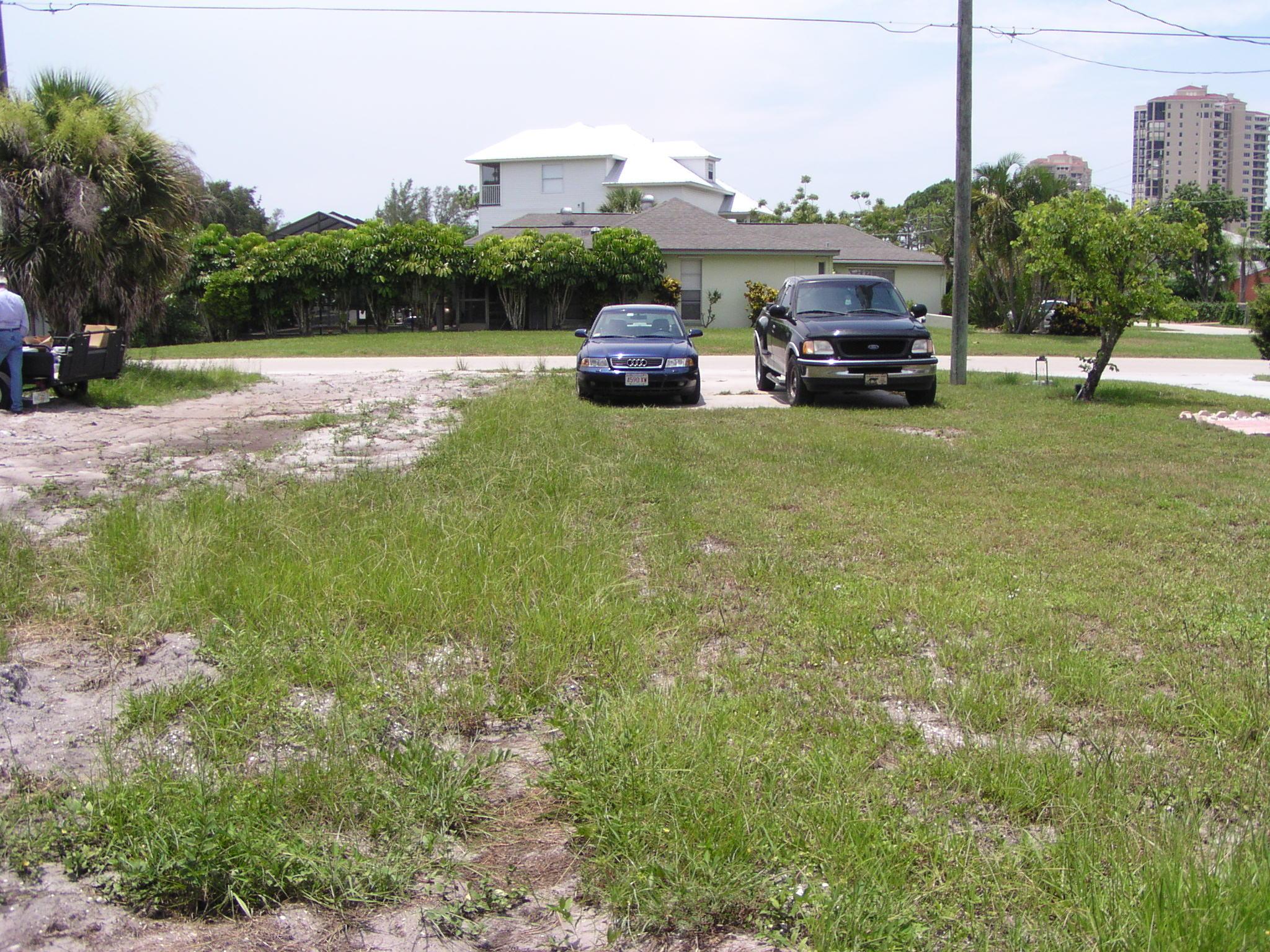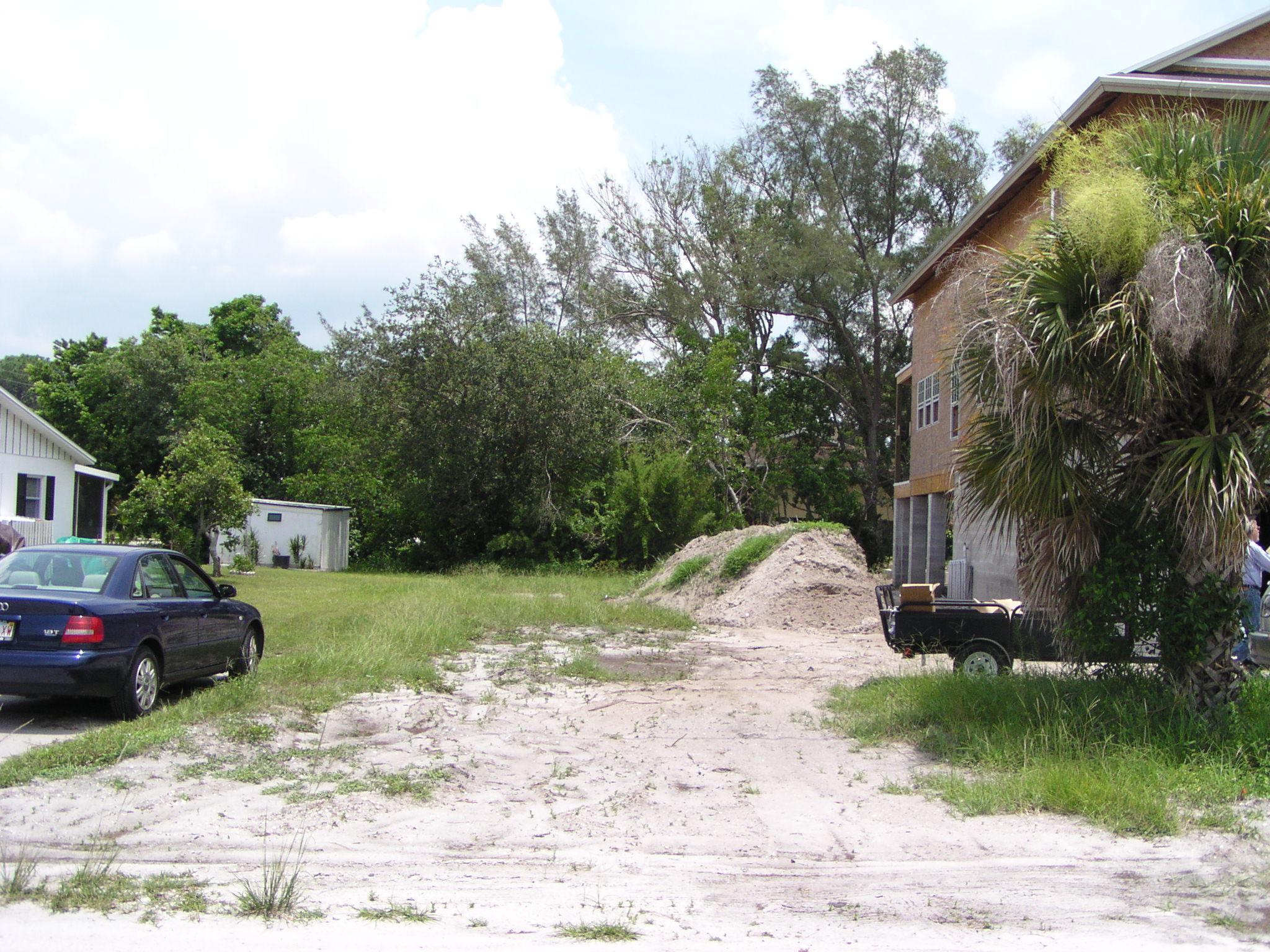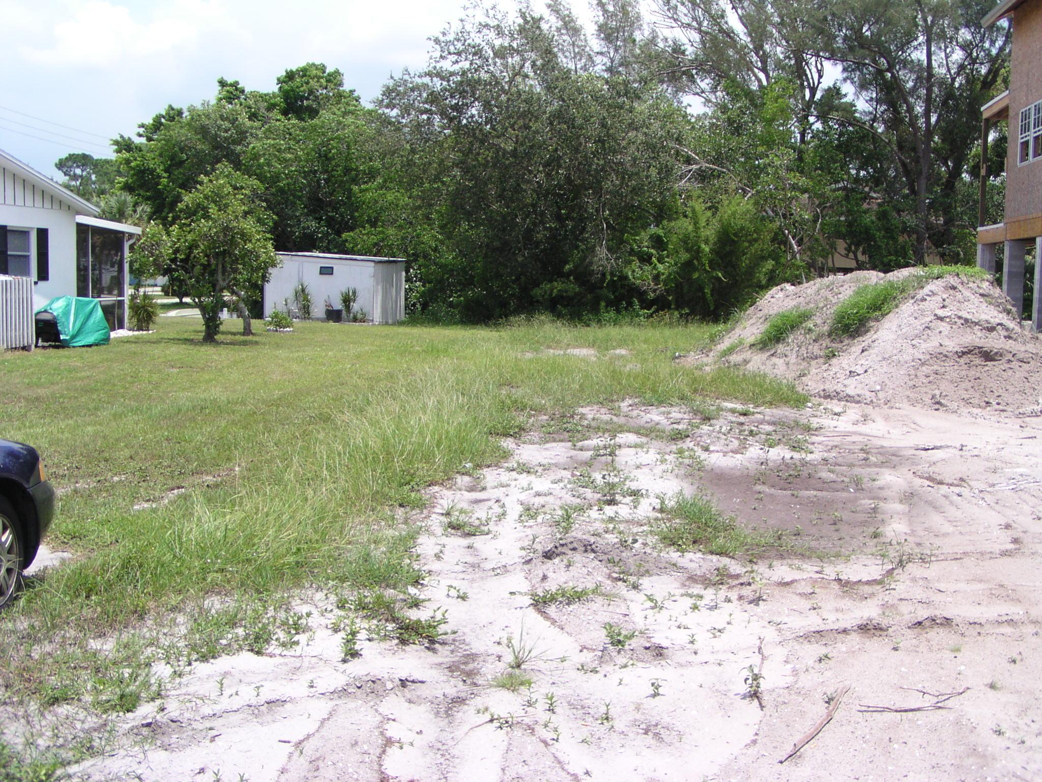 The lot is only half-mowed, but the other half has a bunch of fill on it.