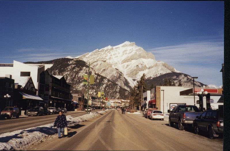 Mike's picture of part of the village of Banff with a nice mountain and a clear January sky.