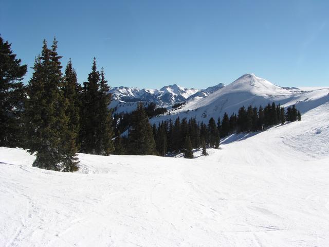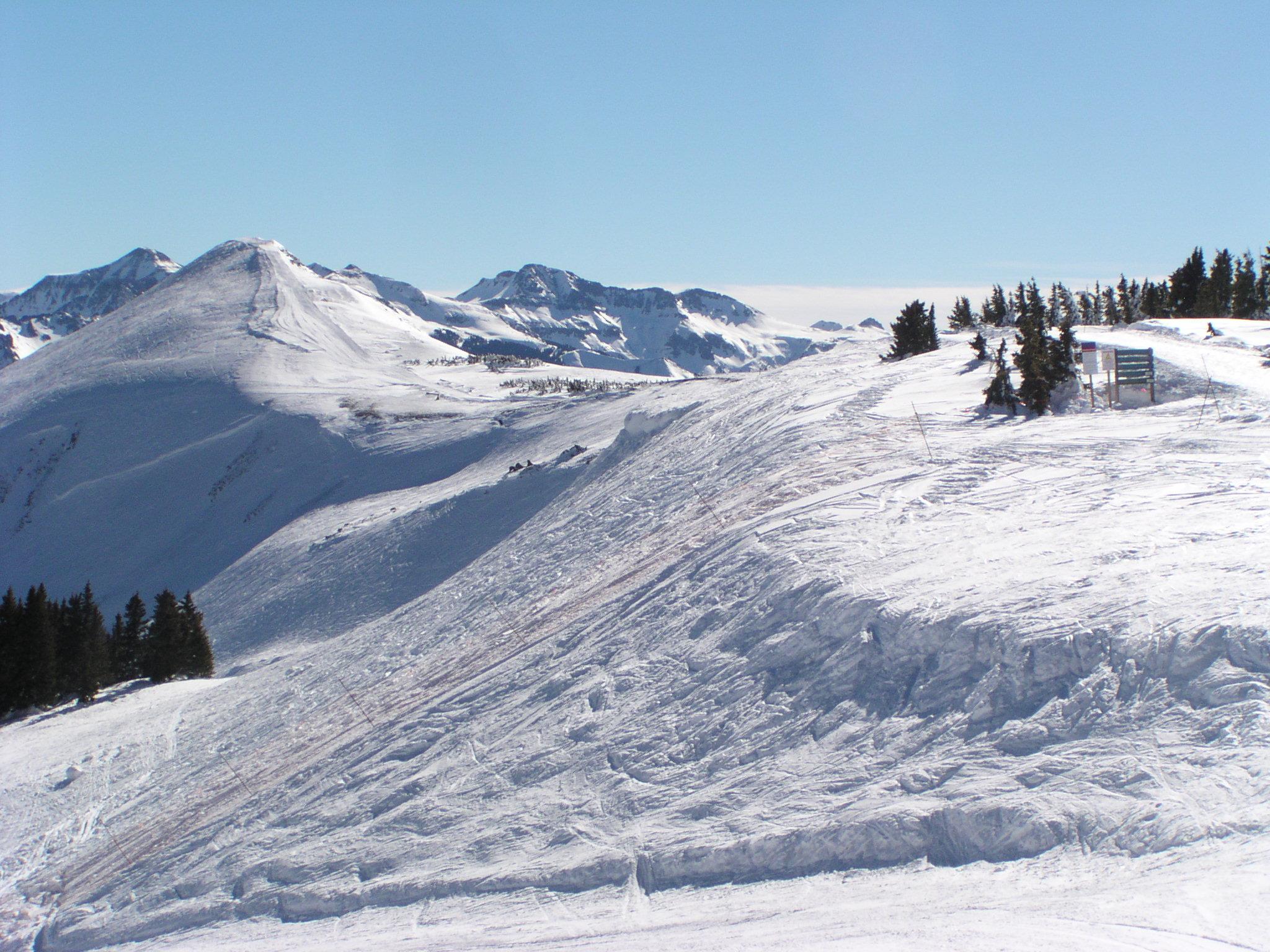 Skiing down from the top of the Treasure Chair over to the base of the Alberta Lift.