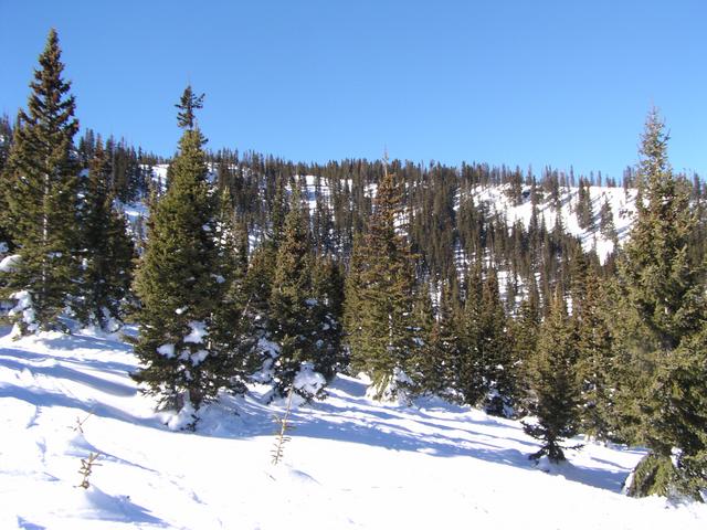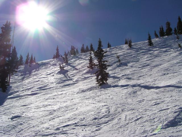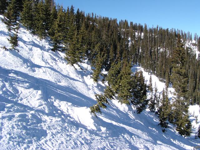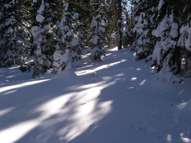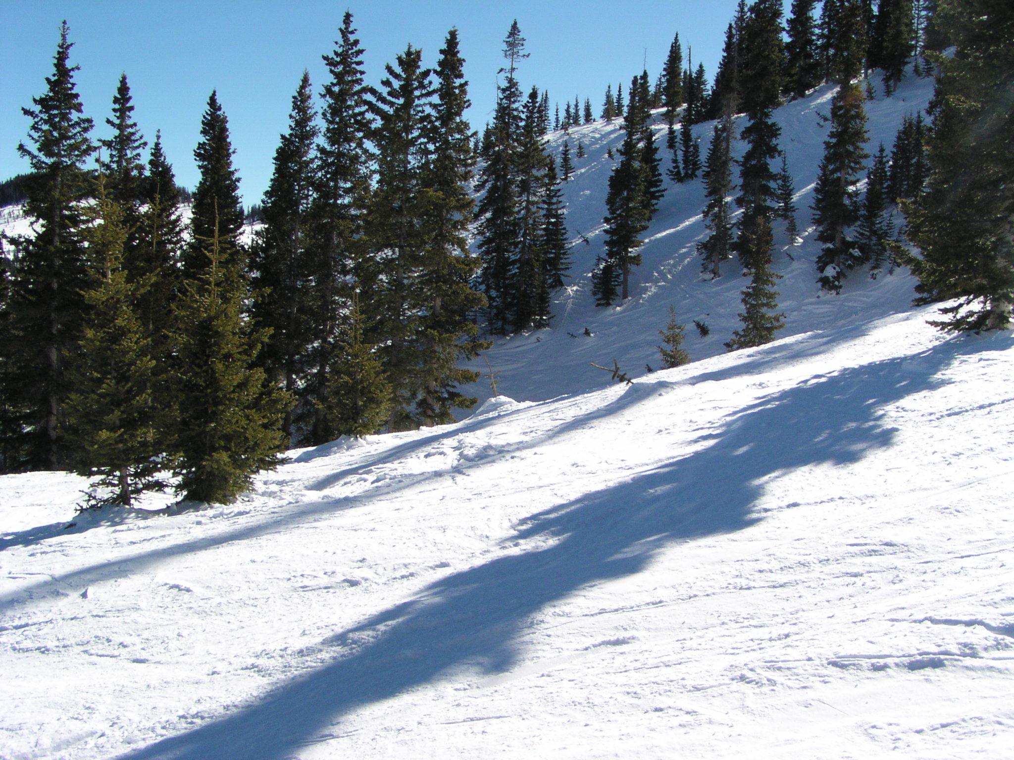 Excellent snow in the trees - more shade and less skier traffic.
