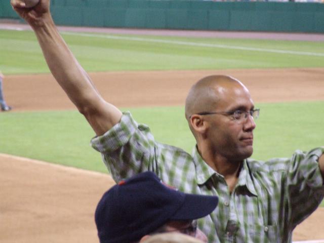 He hit a ball to this guy in my section, who was overly proud of himself.