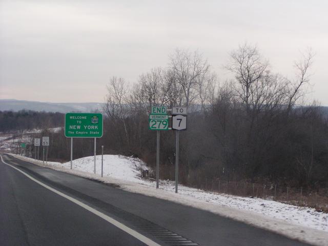 At the state line with New York, the end of Vermont 279 is marked and