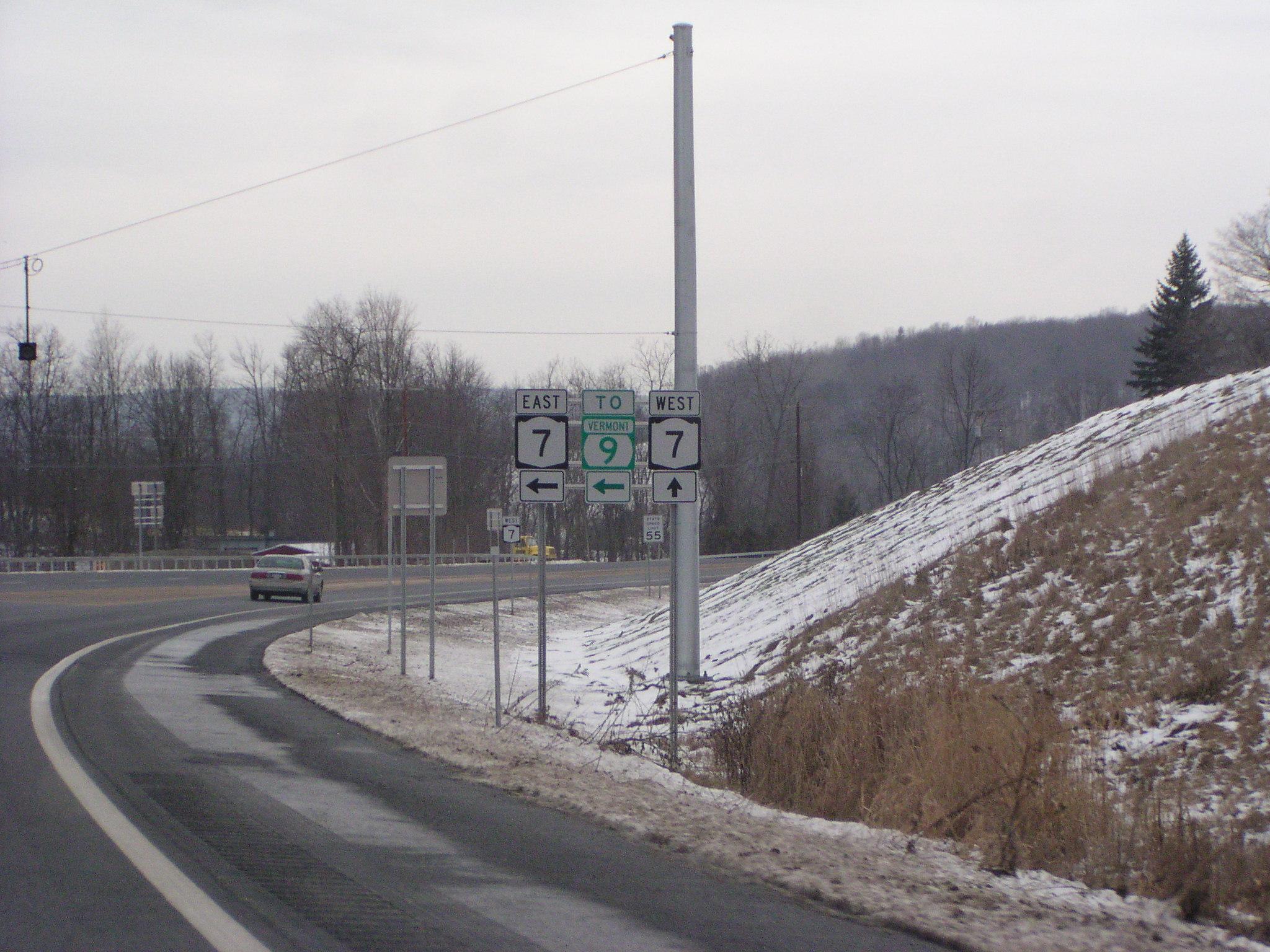 Entering Vermont on US 7 North. This sign was replaced when US 7 was