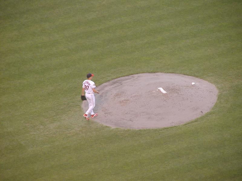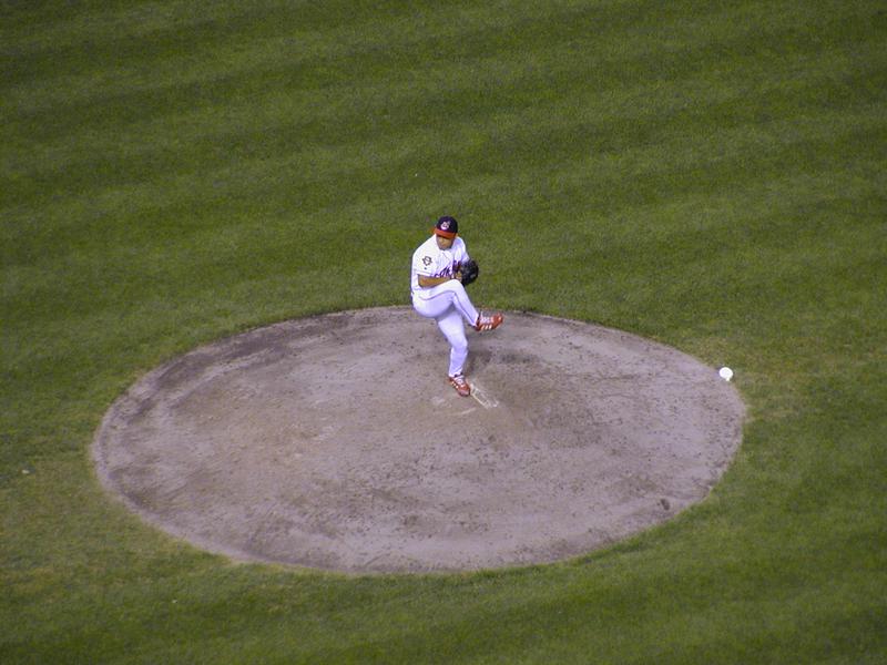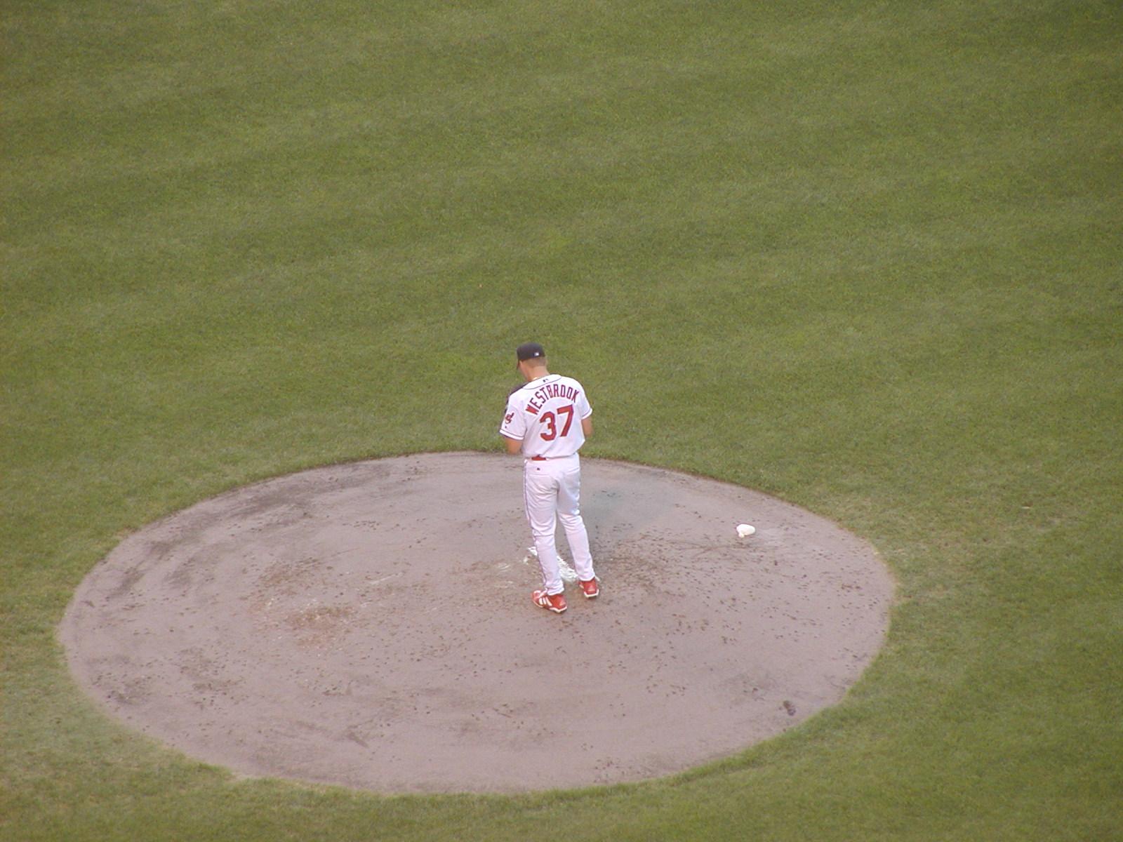Jake Westbrook delivers the first pitch.