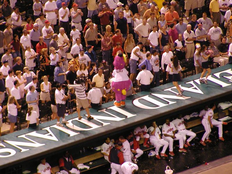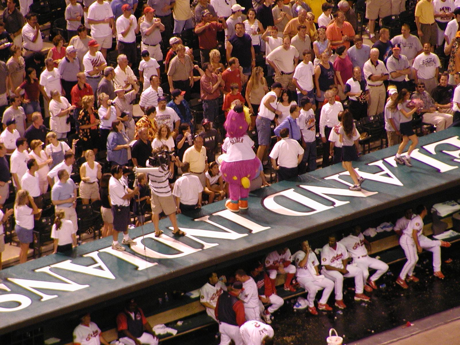 And the non-Wahoo mascot is on the dugout dancing.