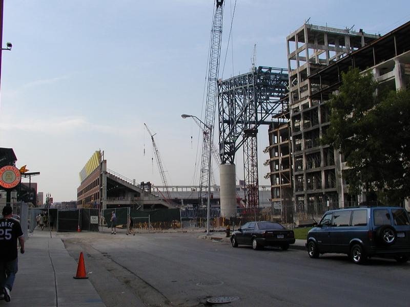 Outside Comerica, at the construction site for the new Lions stadium.