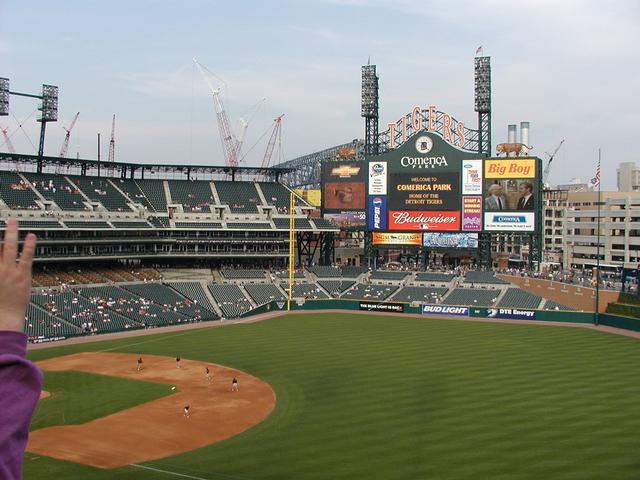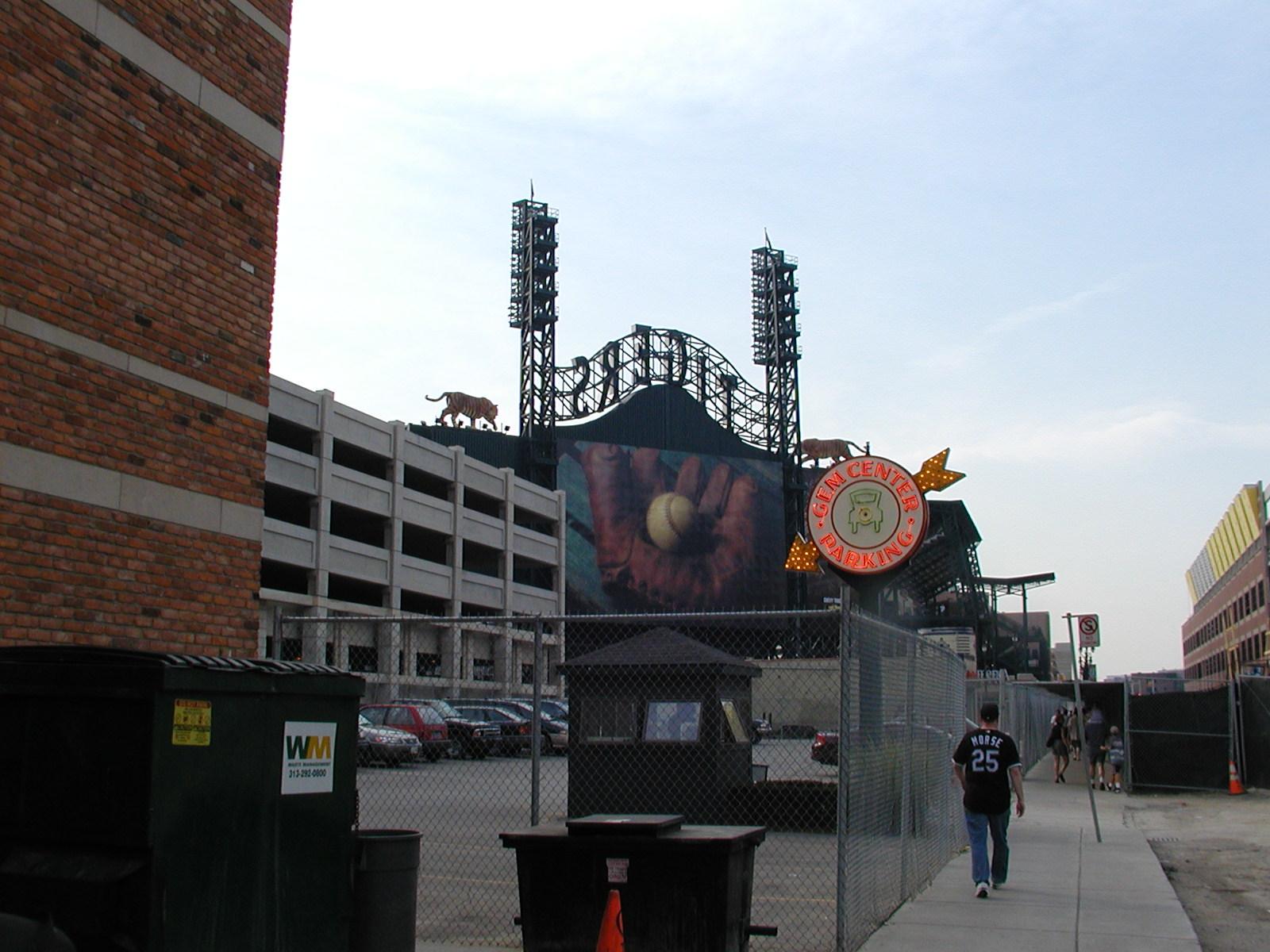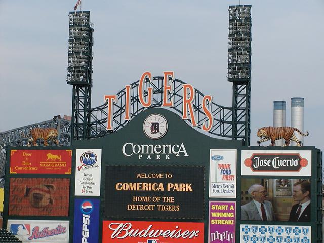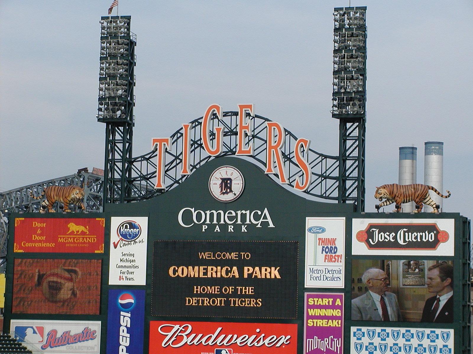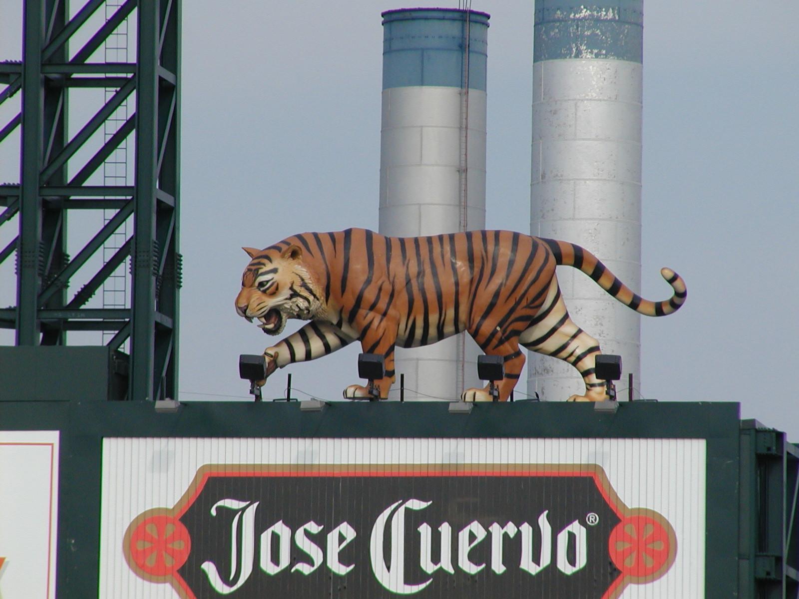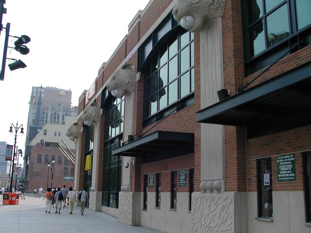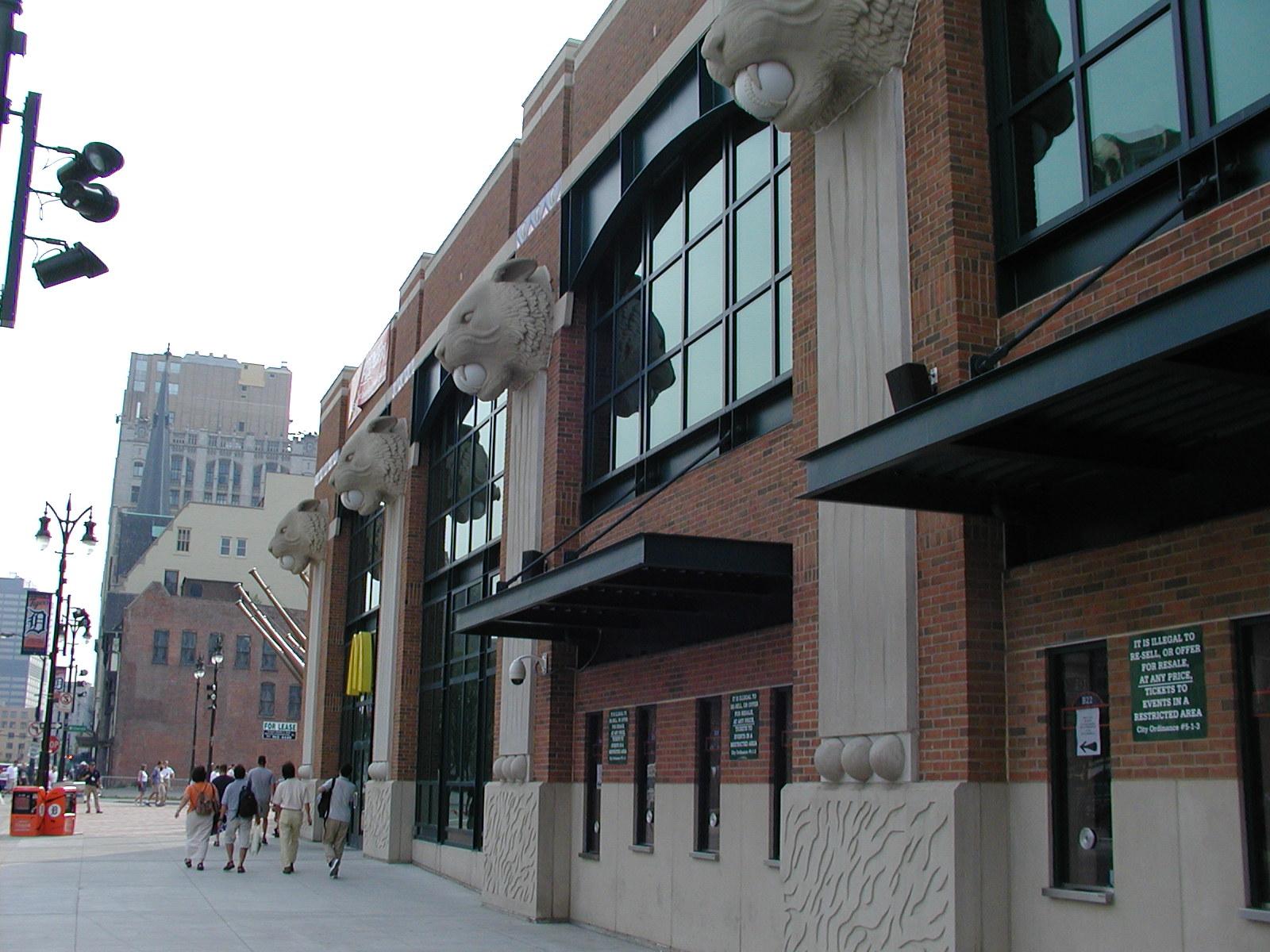 Outside Comerica. Tigers are eating baseballs.