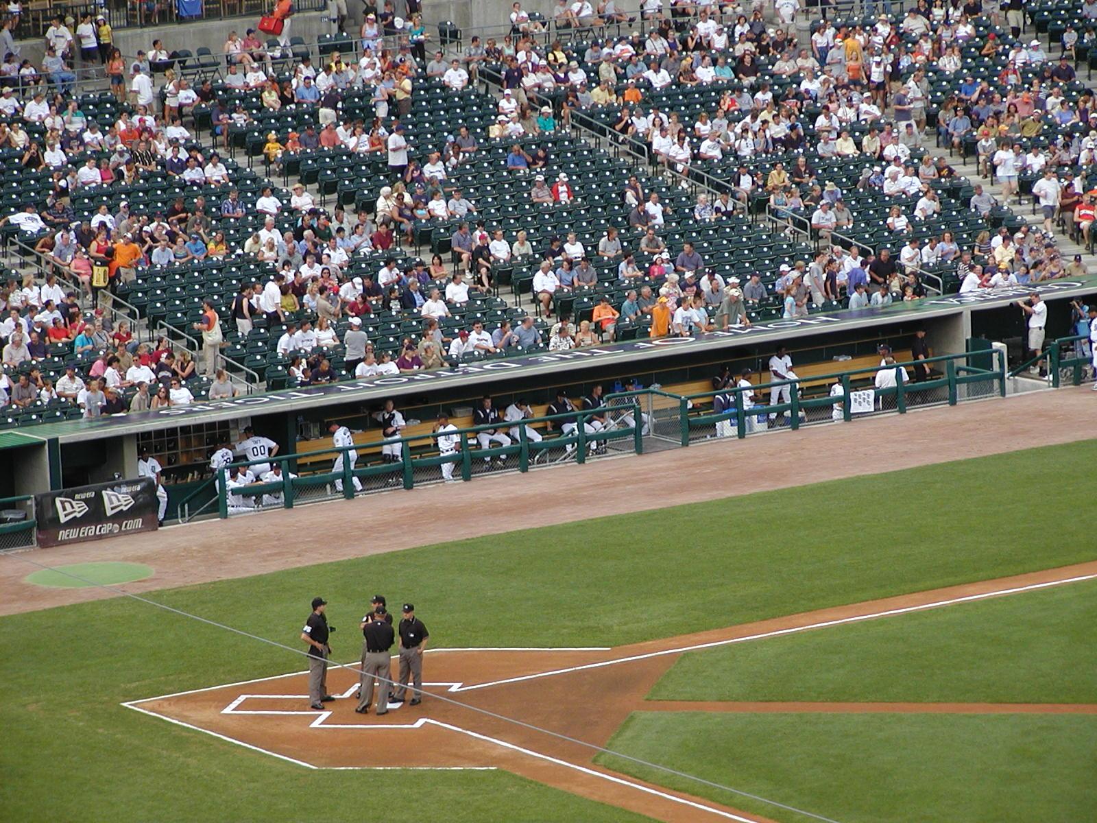 The umpires on the home plate shaped home plate area.