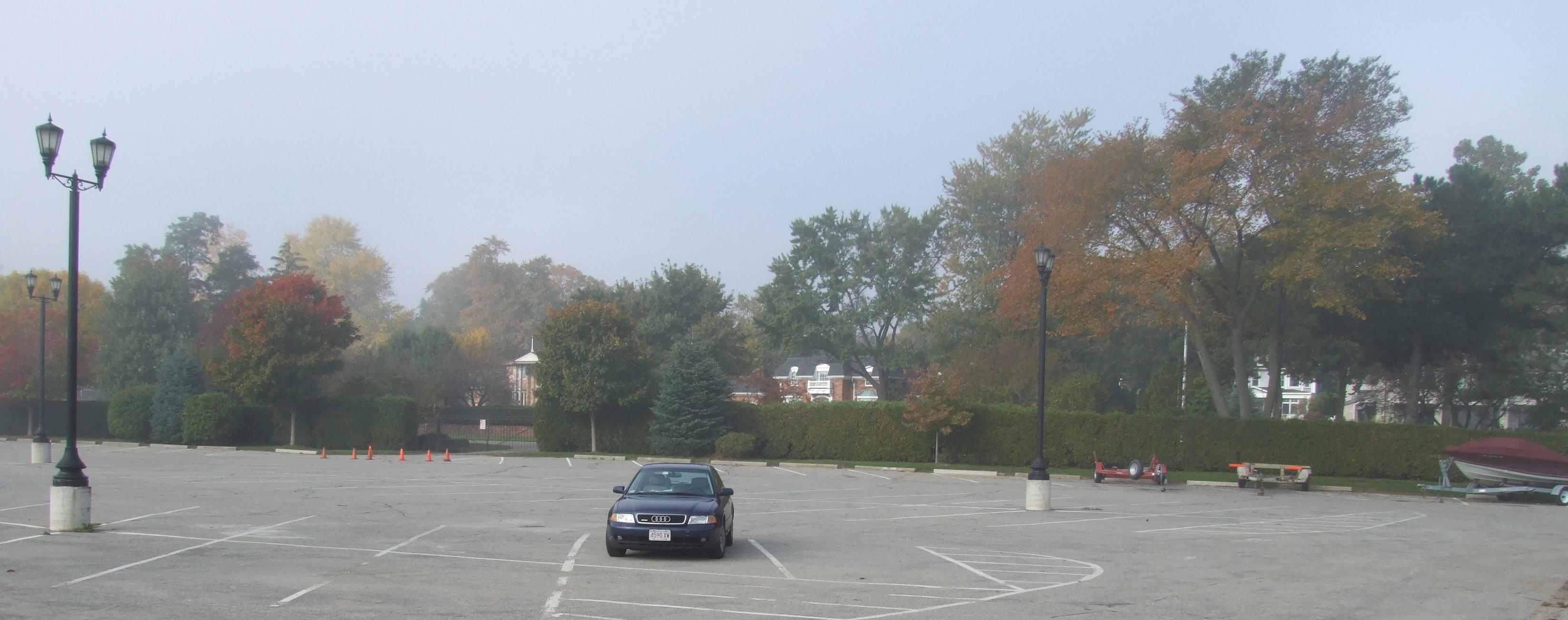 The parking lot of the private park.
