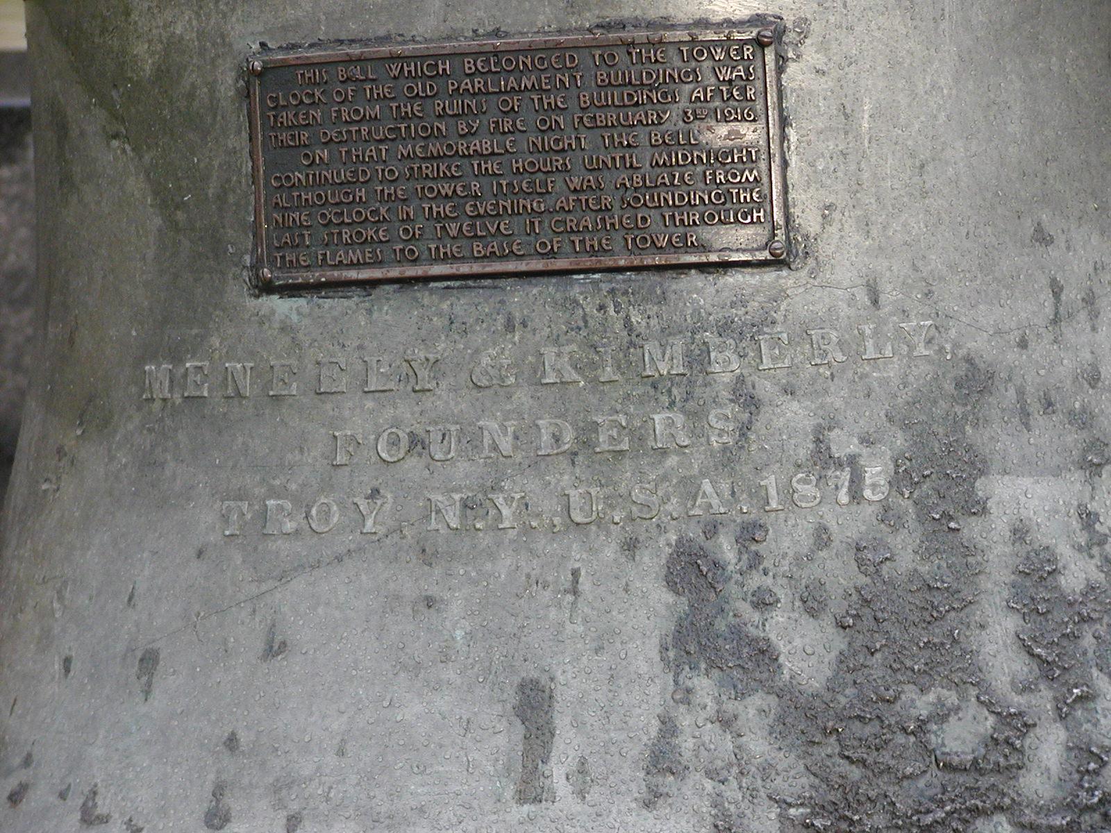 The bell from the old Parliament building, salvaged from the fire.