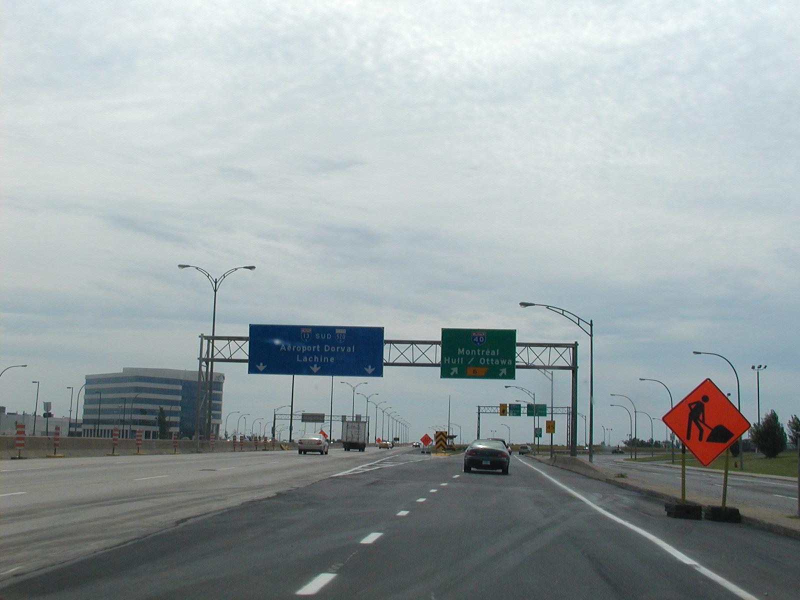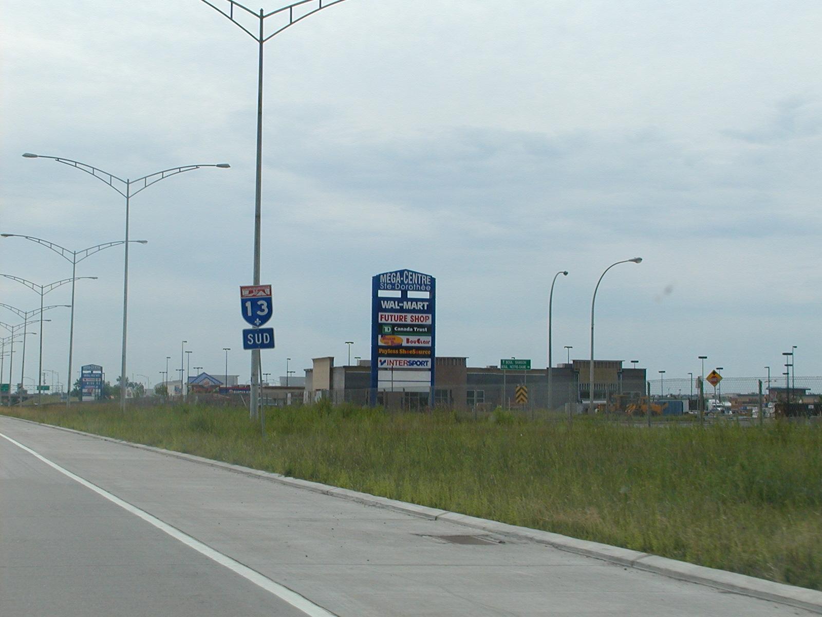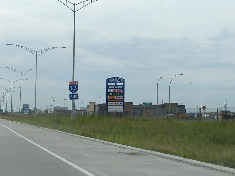 Heading south on Autoroute 13 toward Montréal. Shopping centre central.