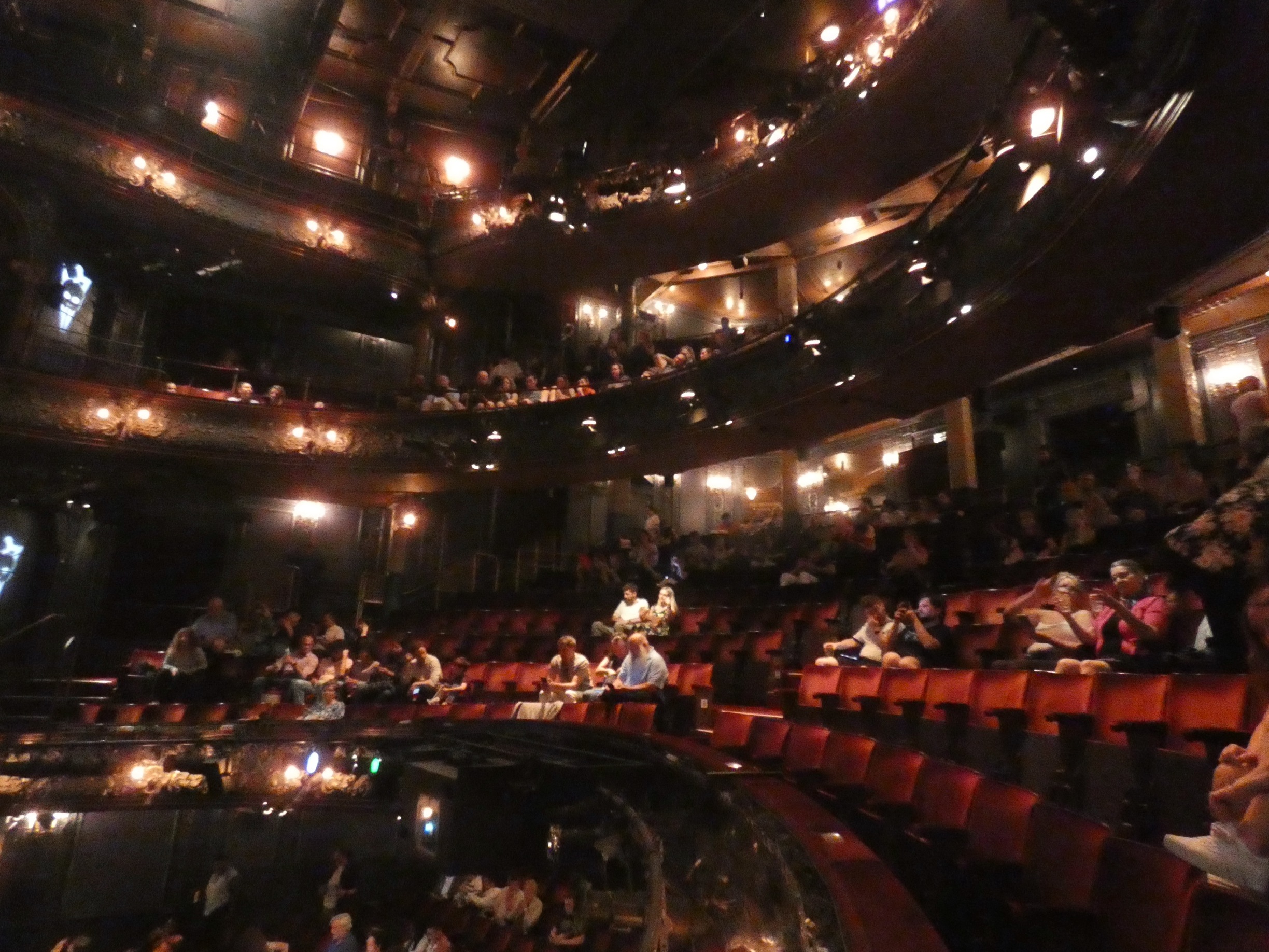 These pictures were taken with my Panasonic Lumix FZ80 and Cathy's iPhone camera in the Palace Theater in London during our visit for Harry Potter and the Cursed Child on June 28, 2023. Images are shown at a resolution of 800x600. Larger image formats are available by clicking the links below each image.