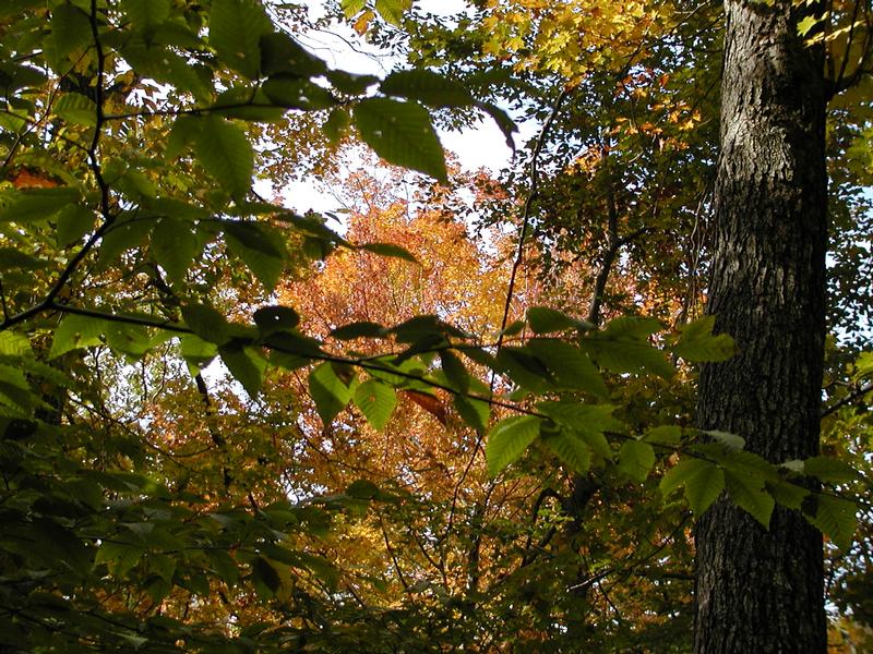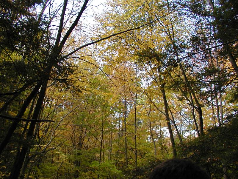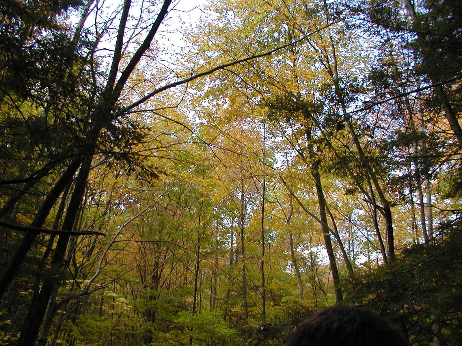 Looking up into the trees.