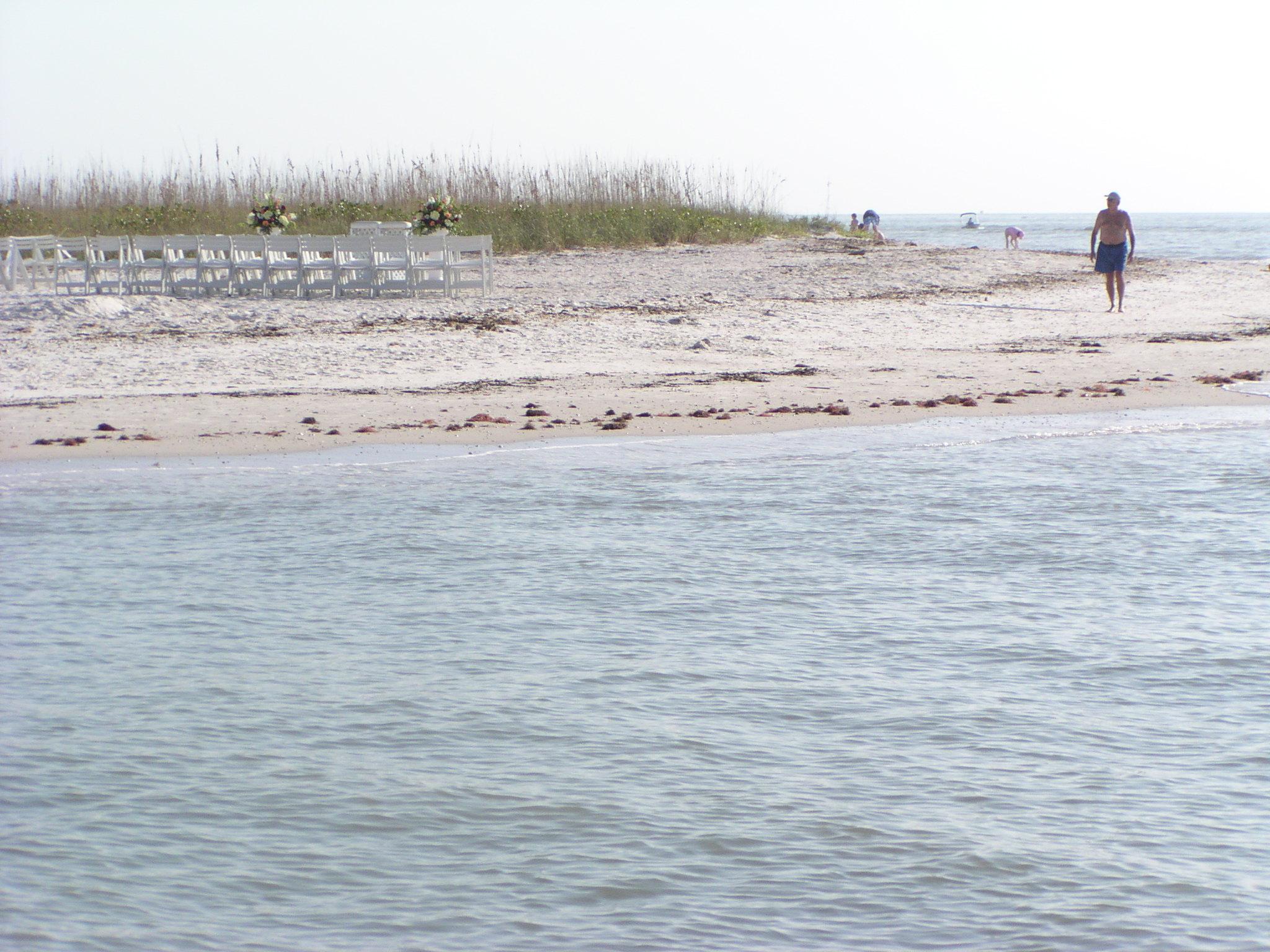 Looks like a wedding happened or will soon happen on the beach.