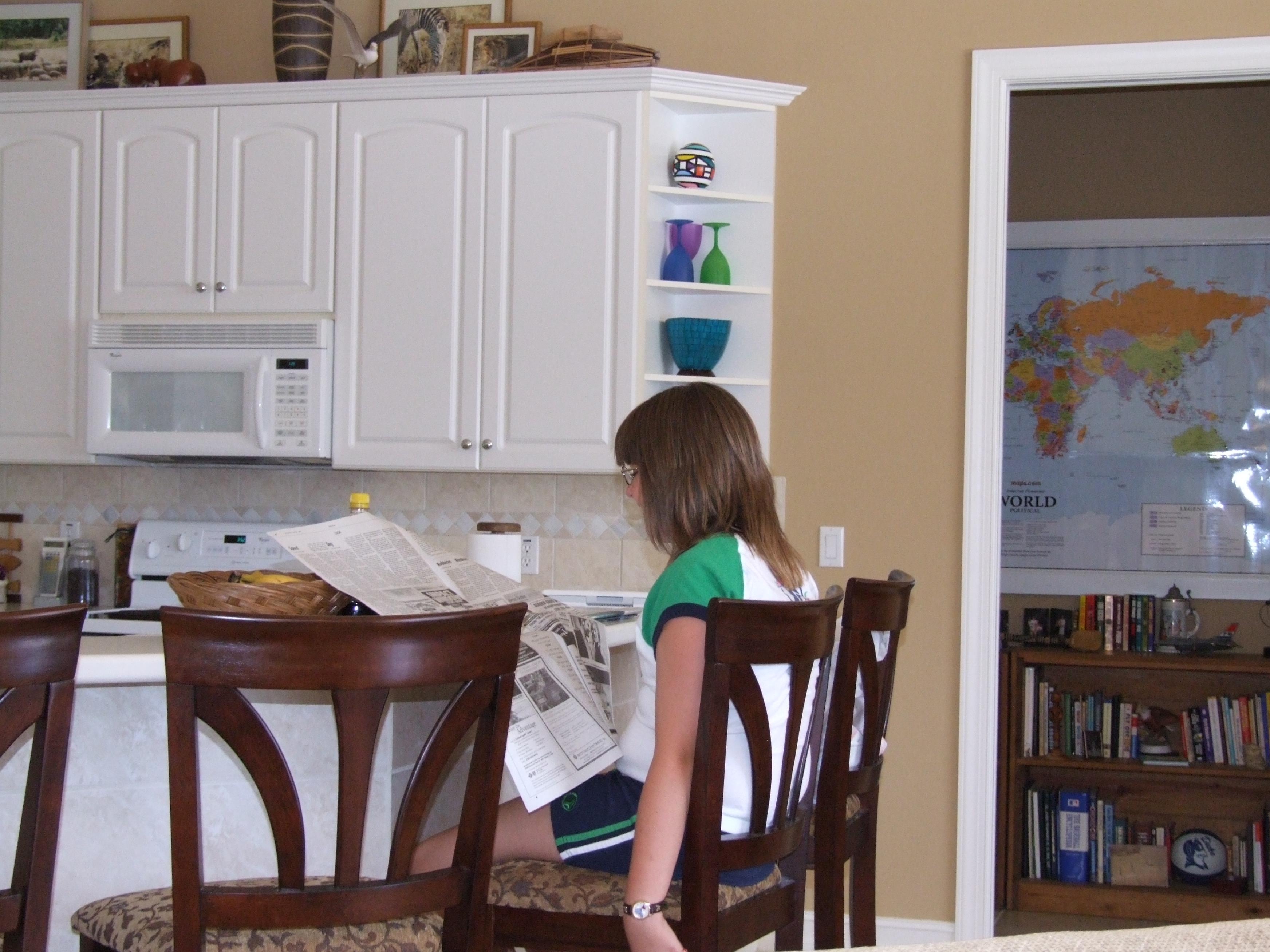 Erin reading the paper.