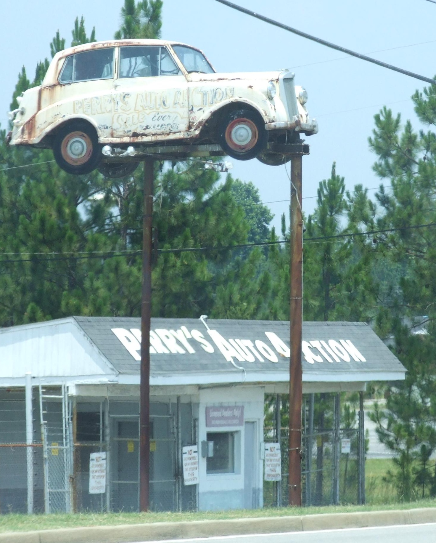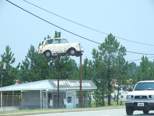 Swainsboro has a car up on poles.