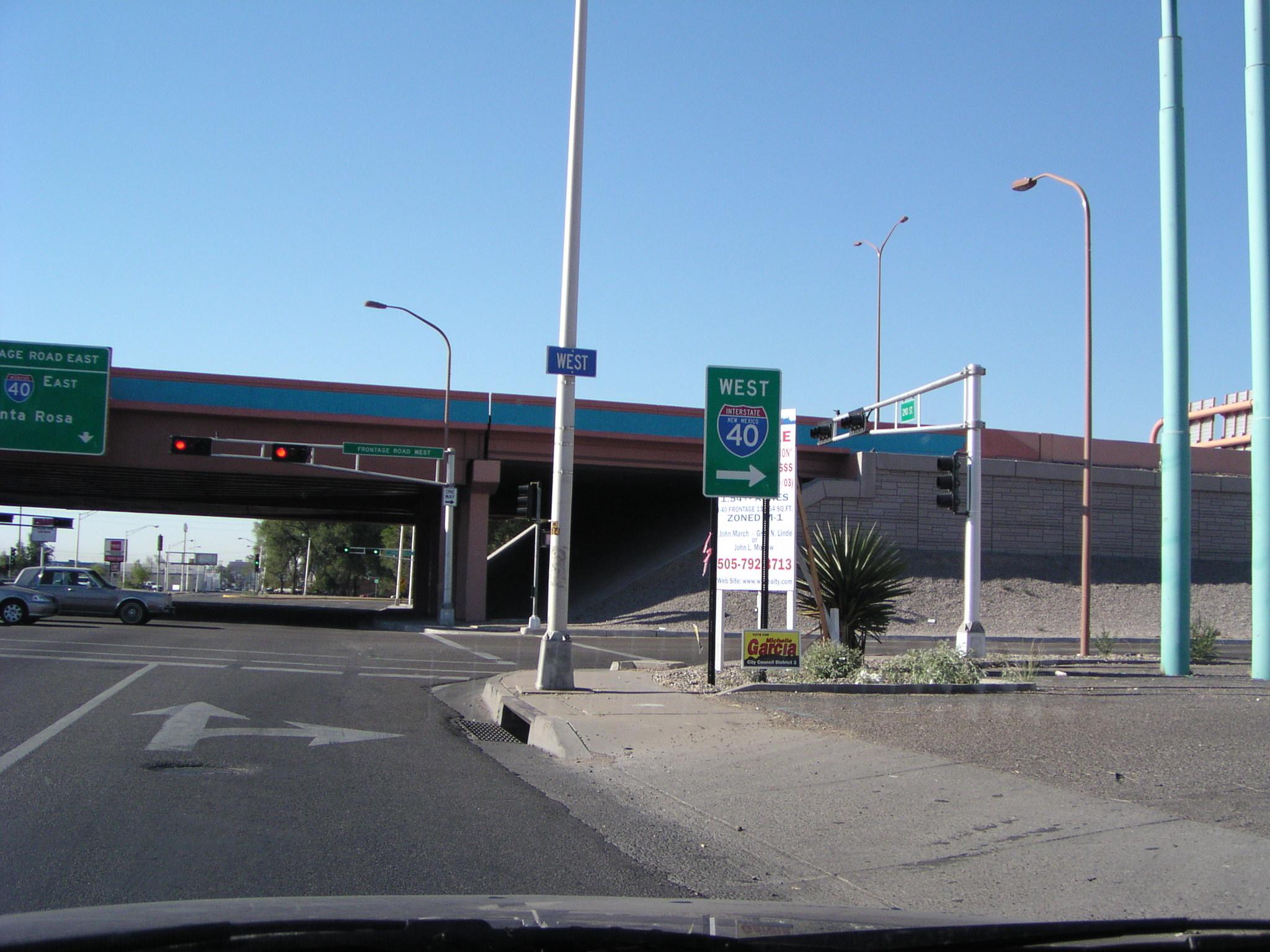 The I-40 frontage road in Albuquerque, at 2nd Street.