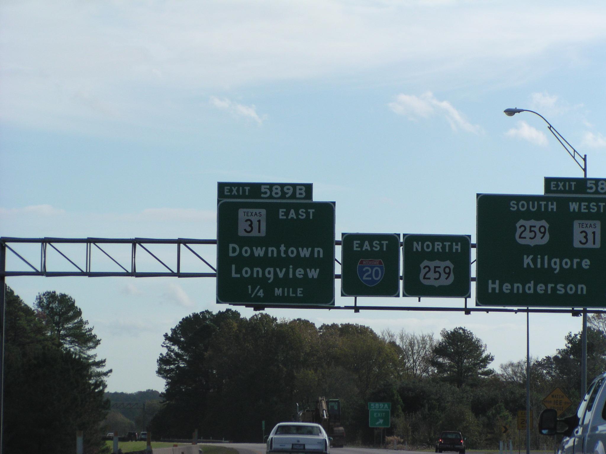 Crossing US 259 on I-20 near Longview.