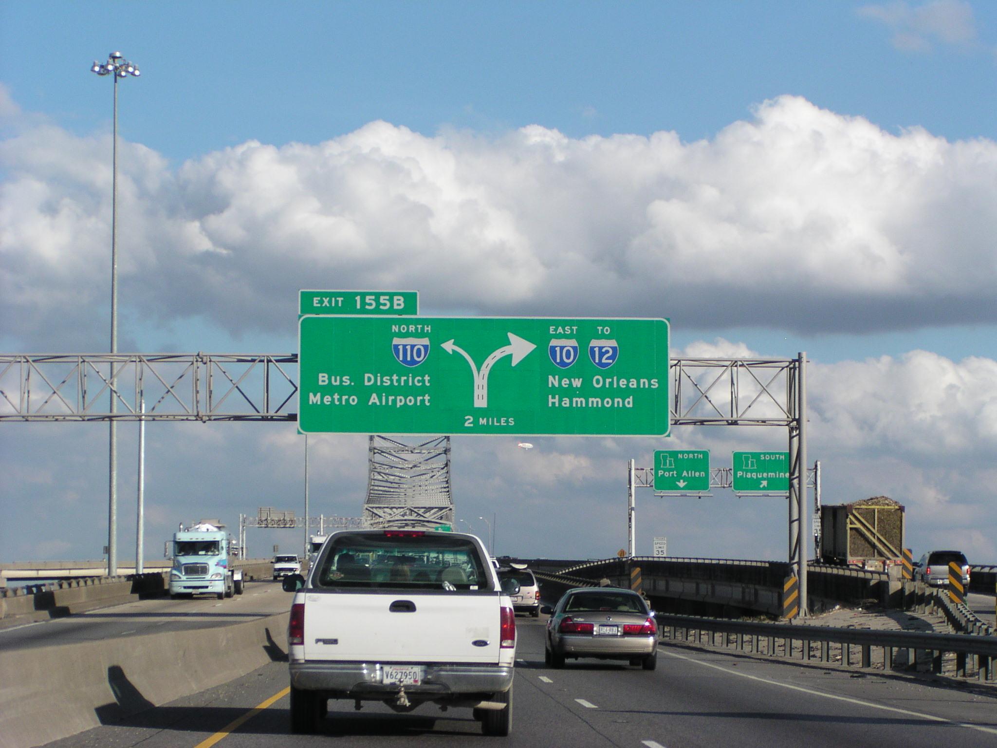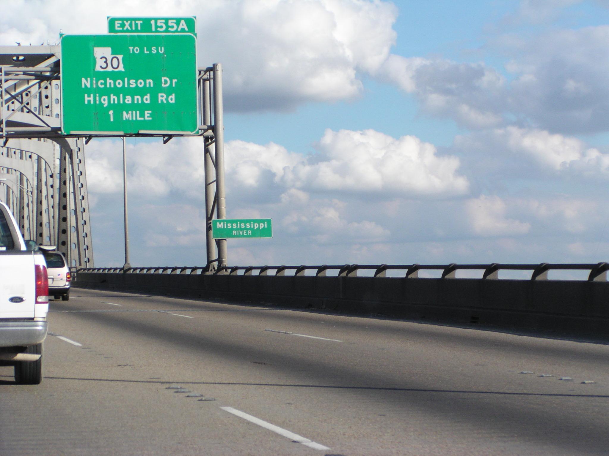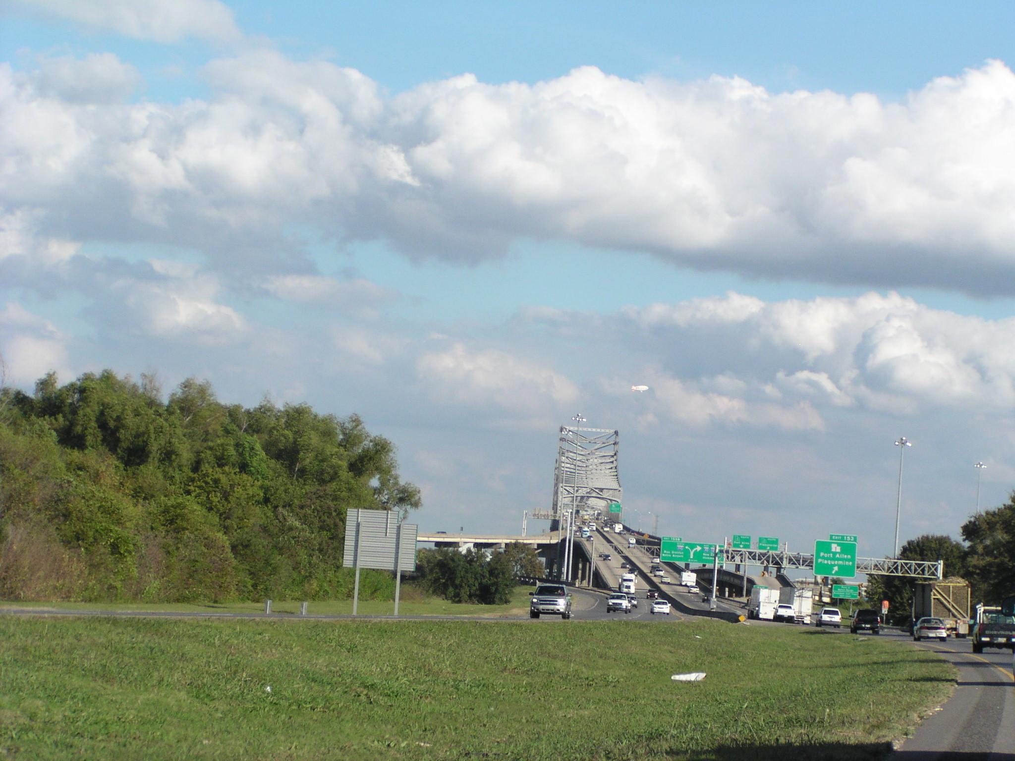 Approaching the I-10 bridge over the Mississippi River in Baton Rouge.