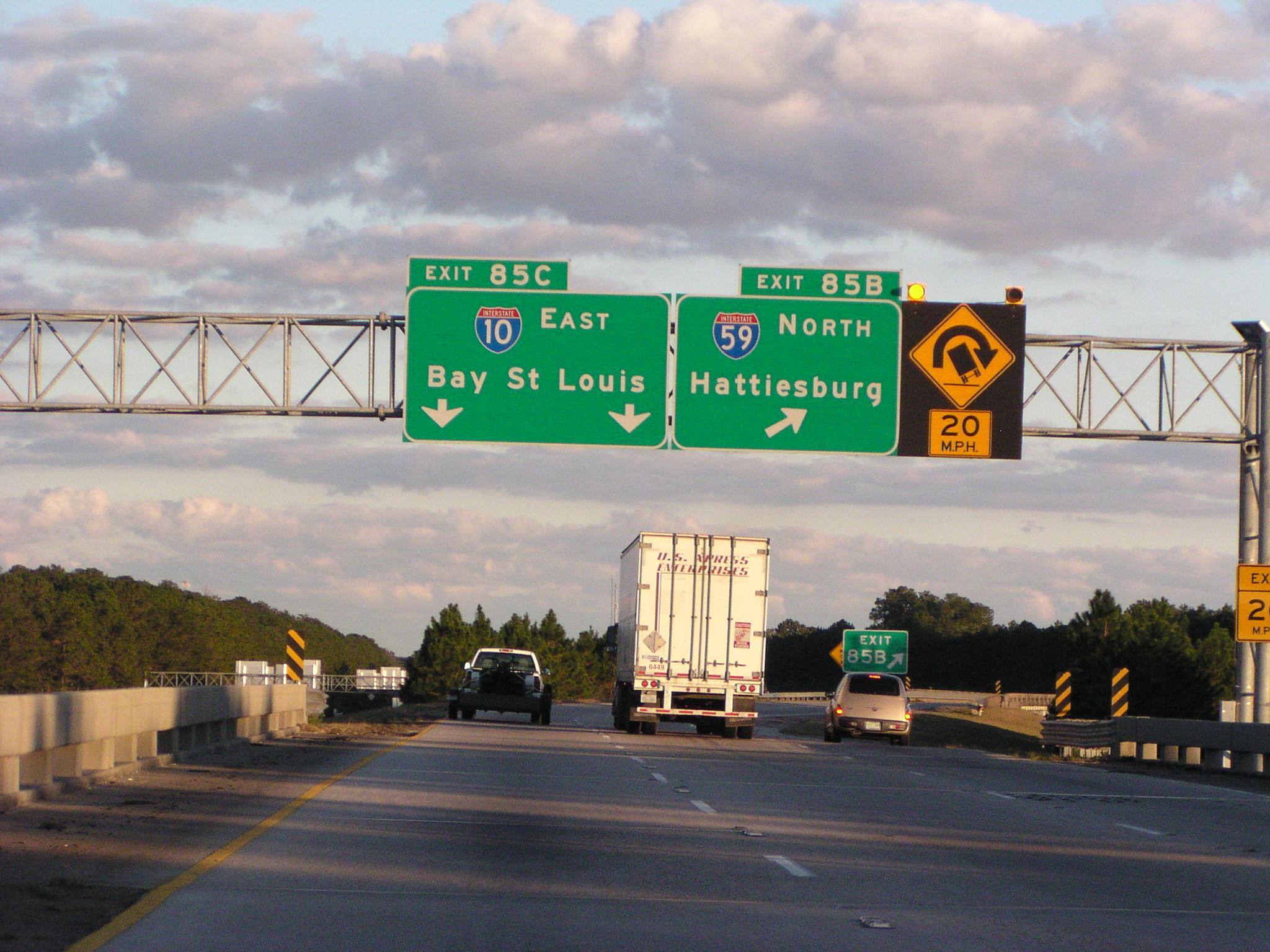 Coming up on the eastern terminus of I-12, at I-10 and I-59.