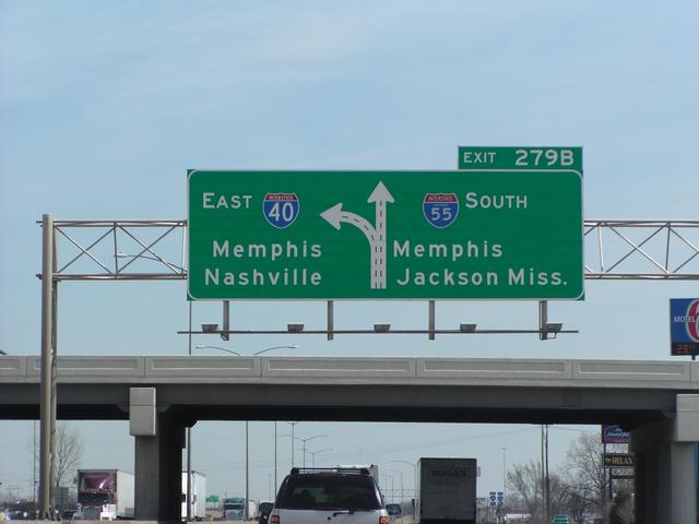 Closer to Memphis, I-40 joins up with I-55.