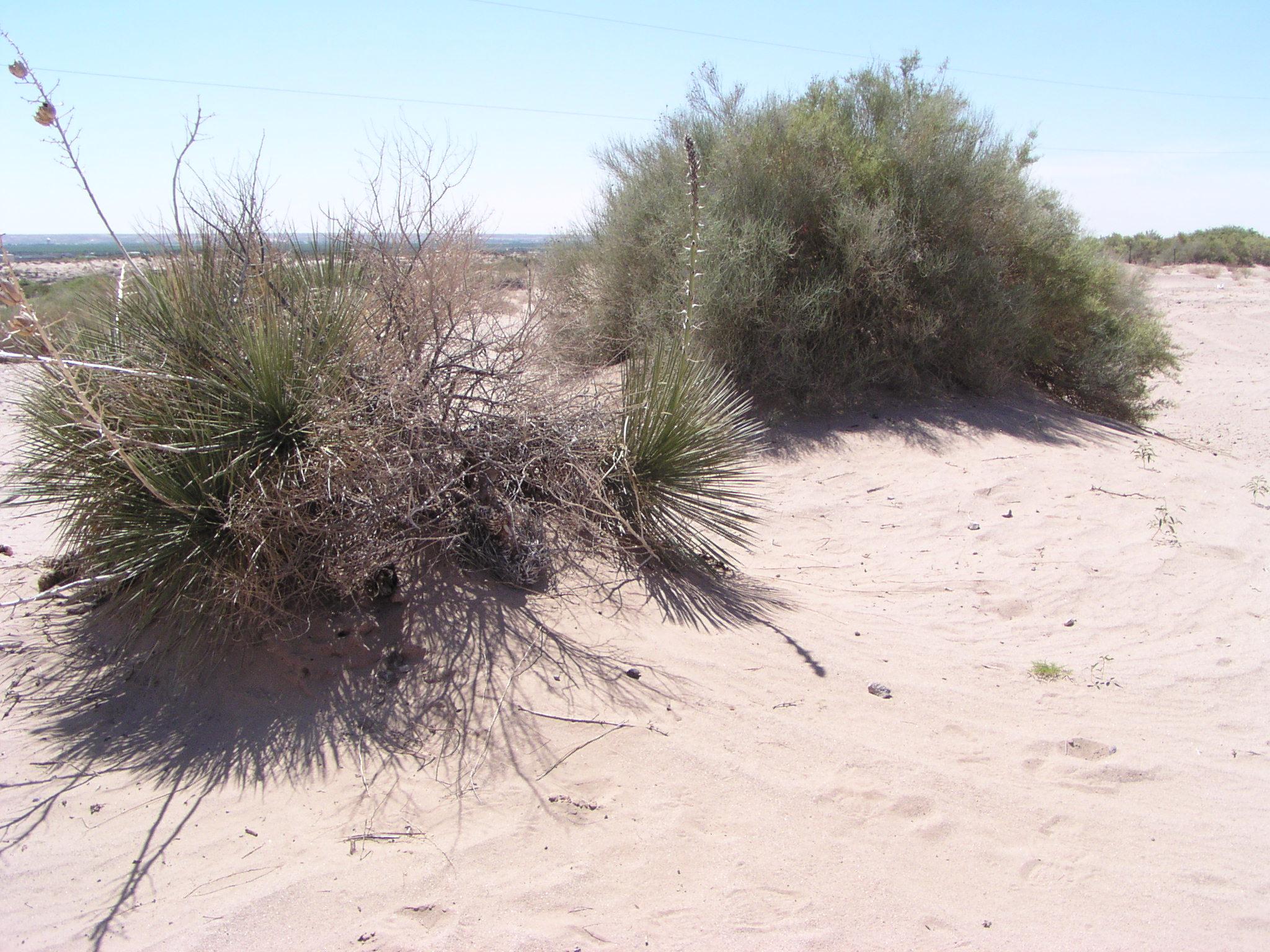 It's a very sandy desert here, and the plants all are surrounded by mounds of sand.