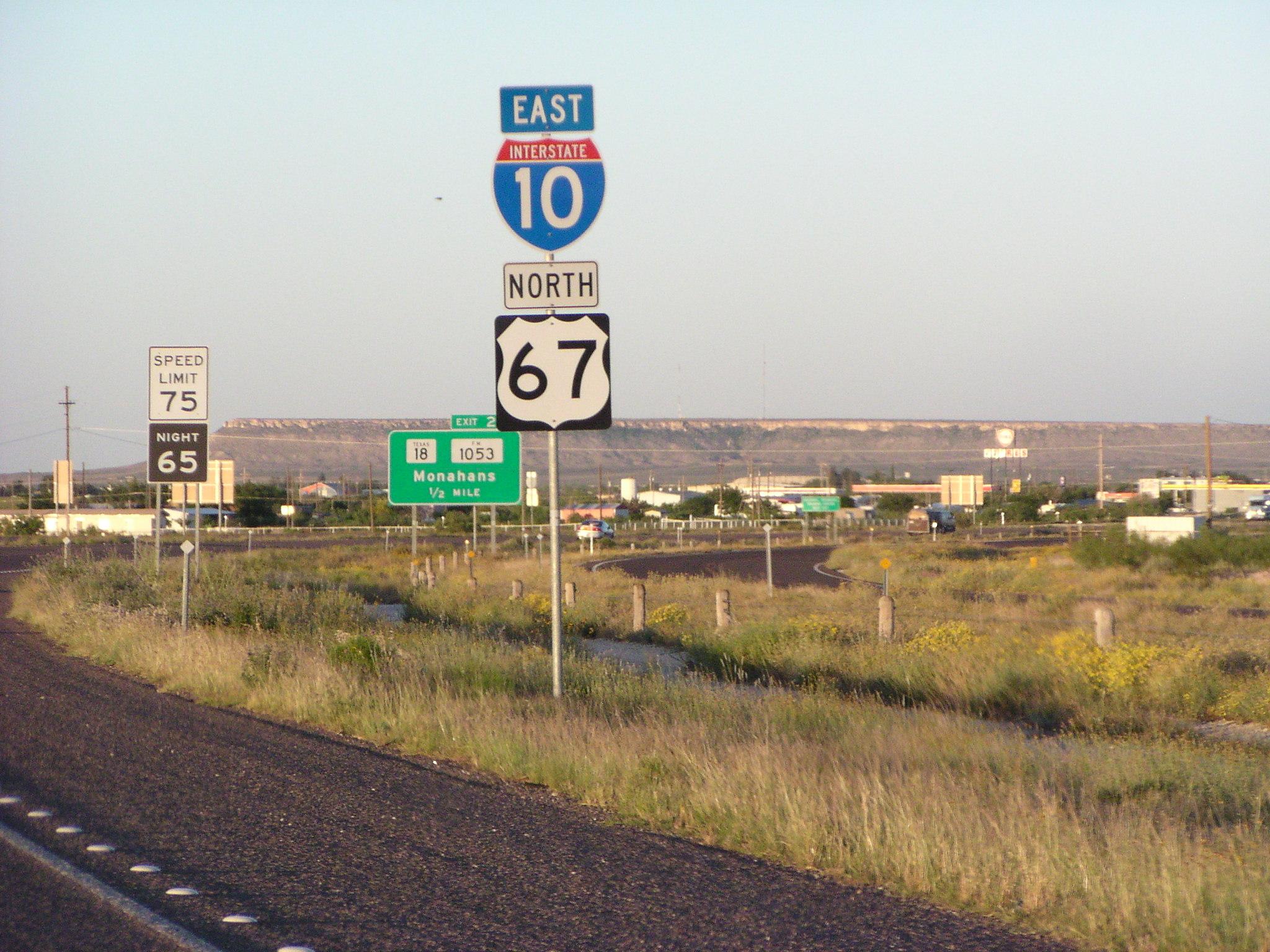 US 67 joins I-10 for a while.