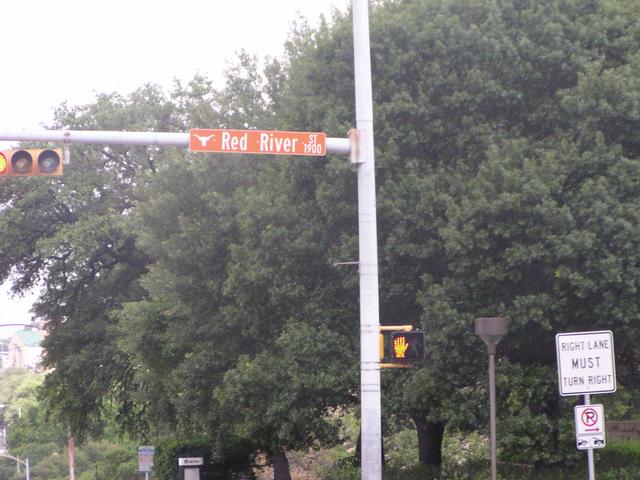 Right near the university, there are longhorns on the street signs.