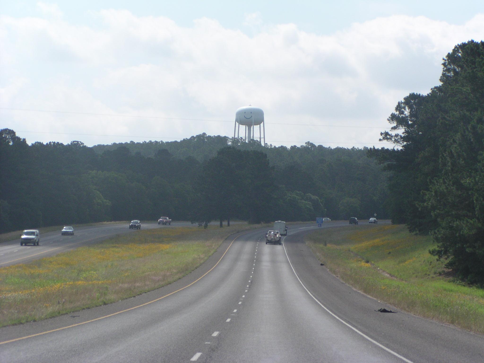 A happy water tower on the way out of town.