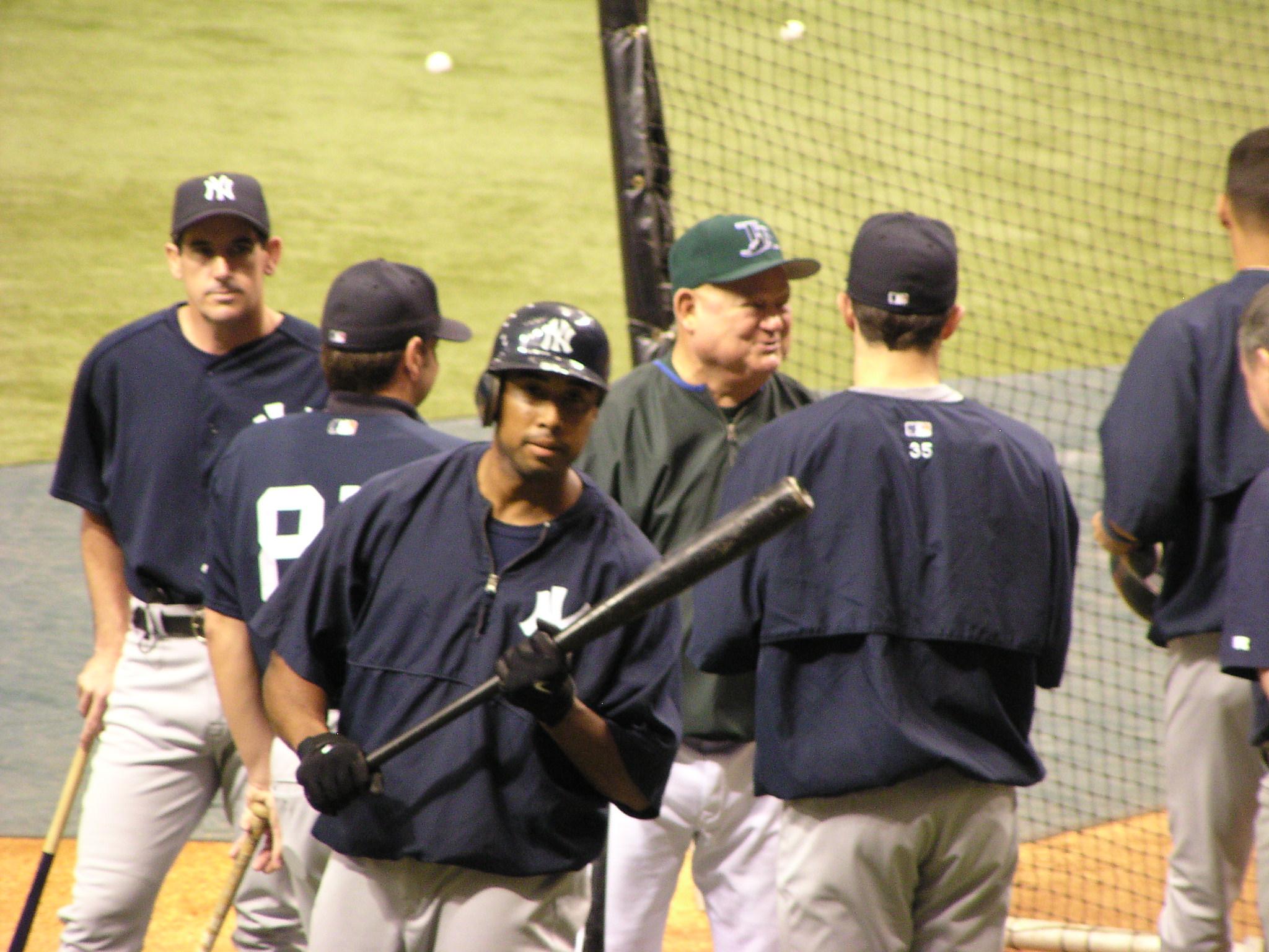 Bernie Williams in the foreground, Don Zimmer in back.