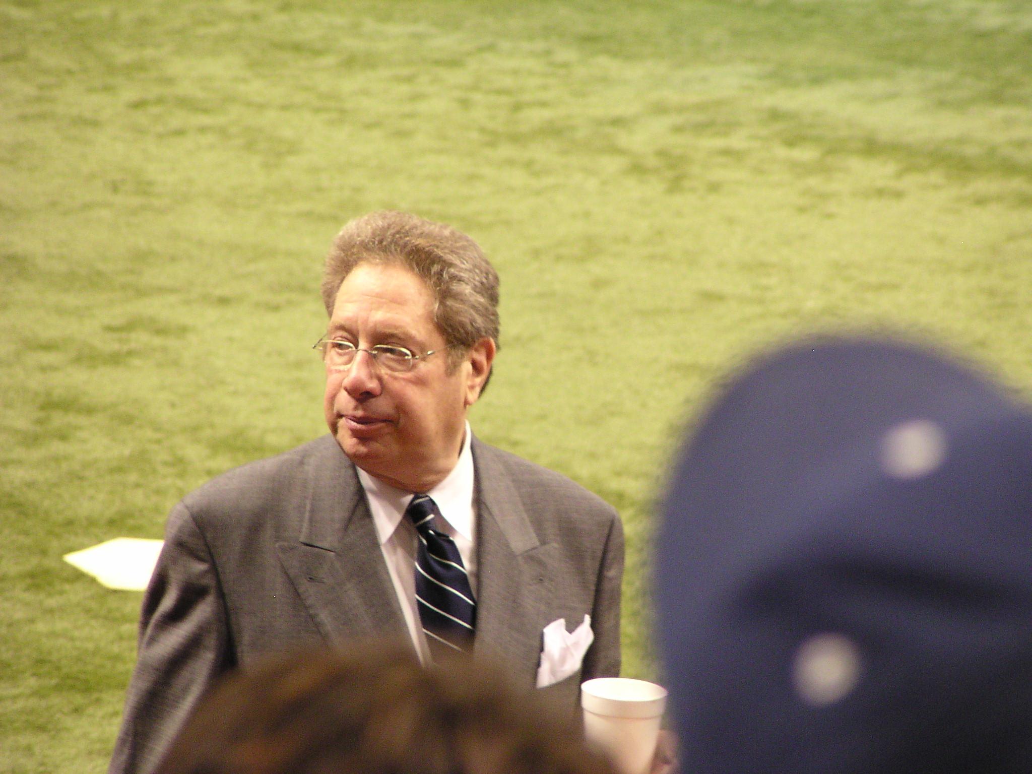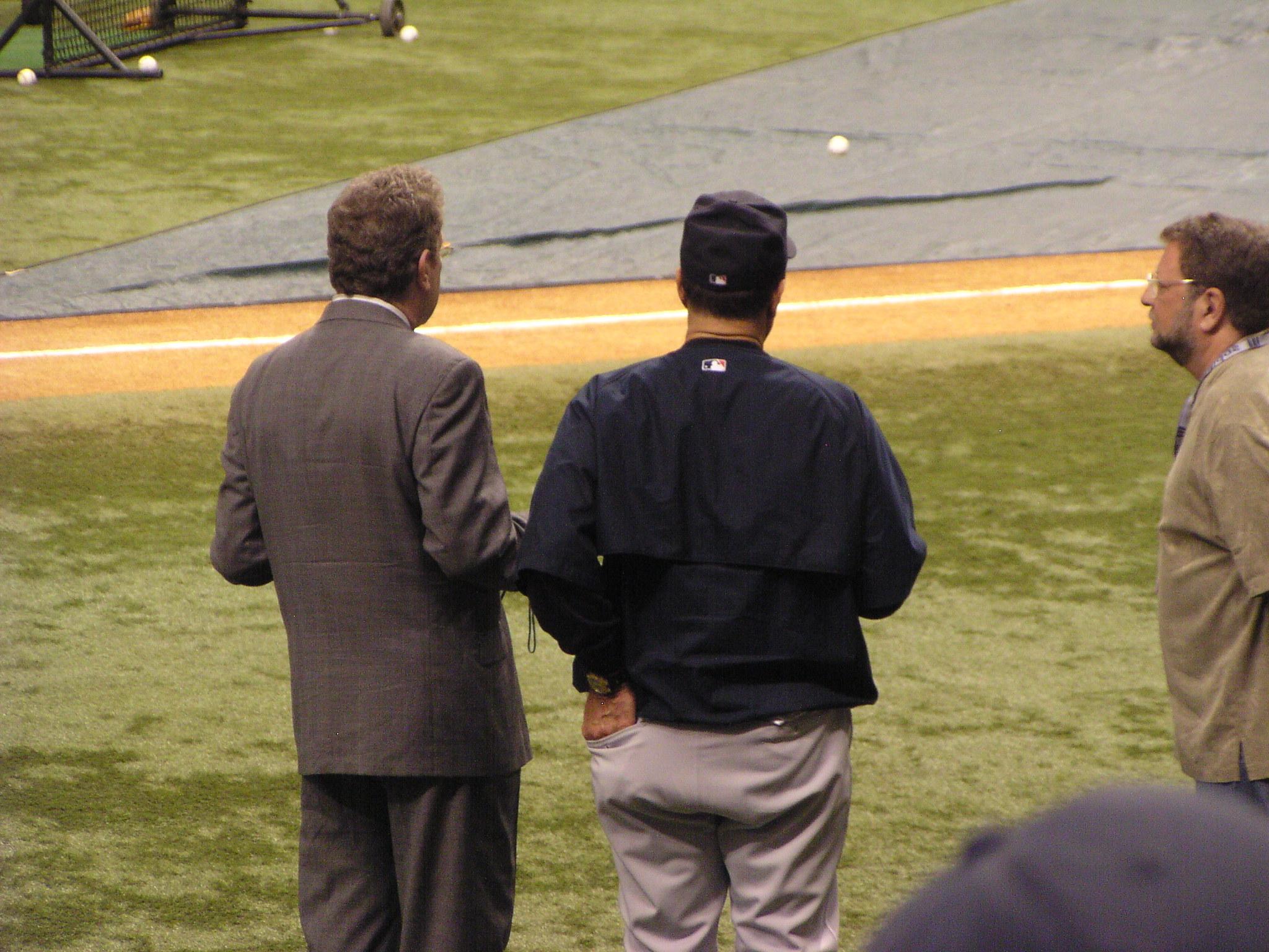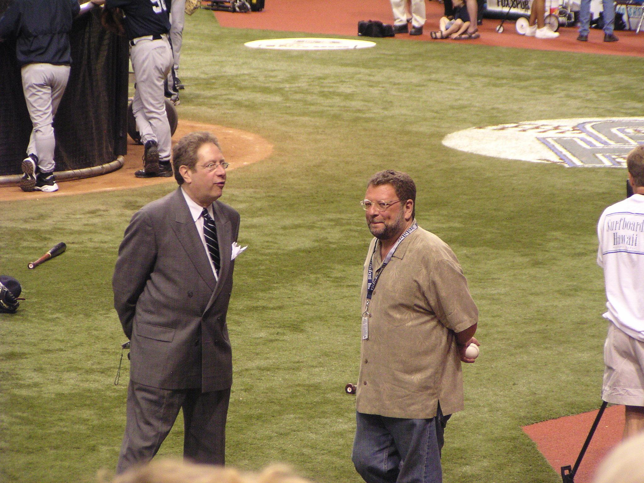 John Sterling, who was clearly enjoying the attention from the Yankee fans behind the dugout.