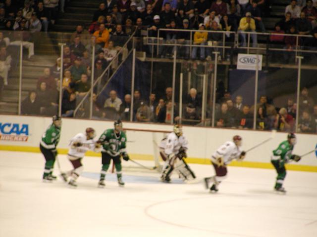 ND's 6 skaters celebrate their first goal.