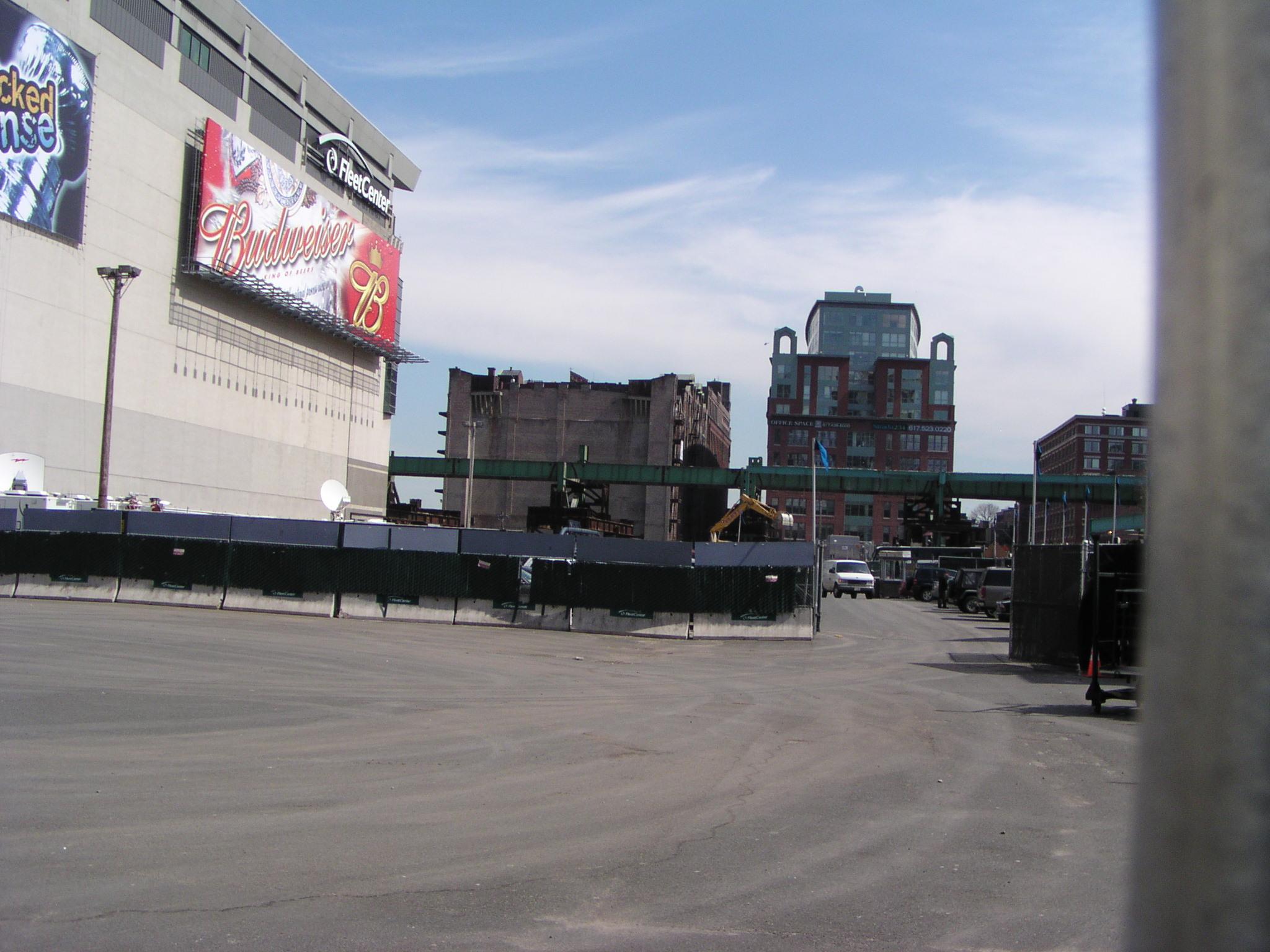 The empty lot that was once the Boston Garden, and the old elevated highway that used to be I-93/Central Artery.