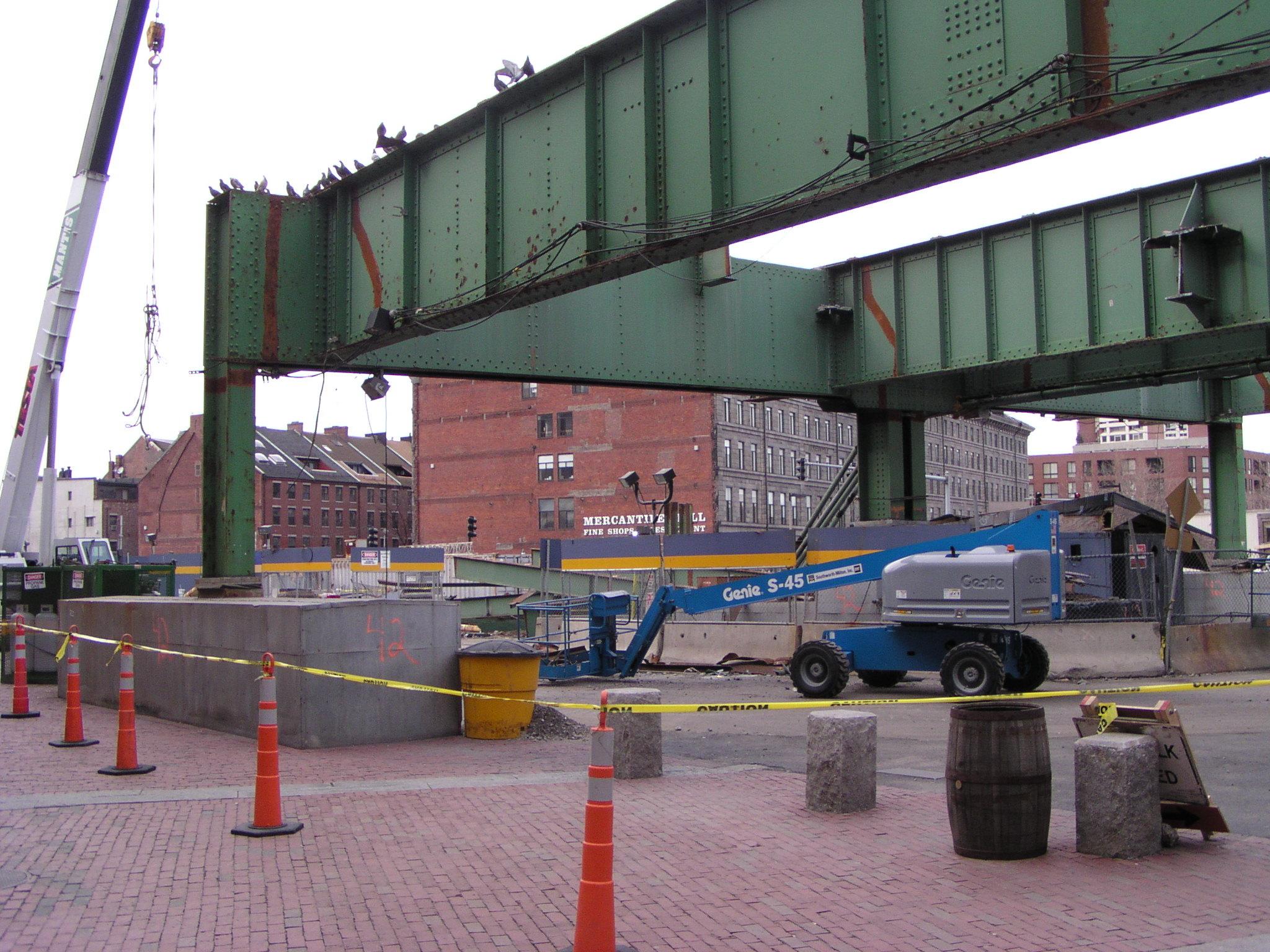Behind Quincy Markets, the dismantling of the Central Artery is well underway.